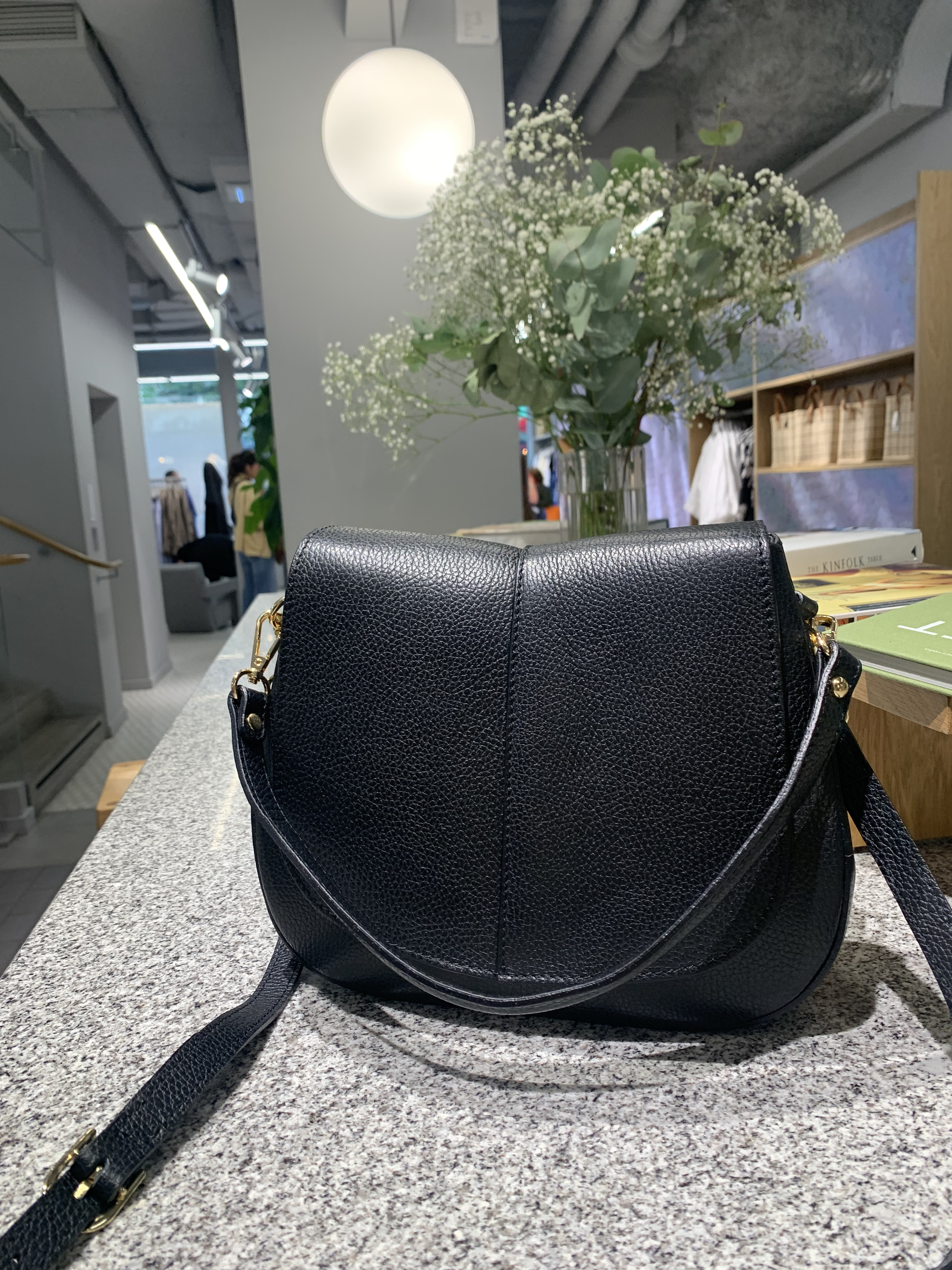 Shoulder bag in grained cowhide leather