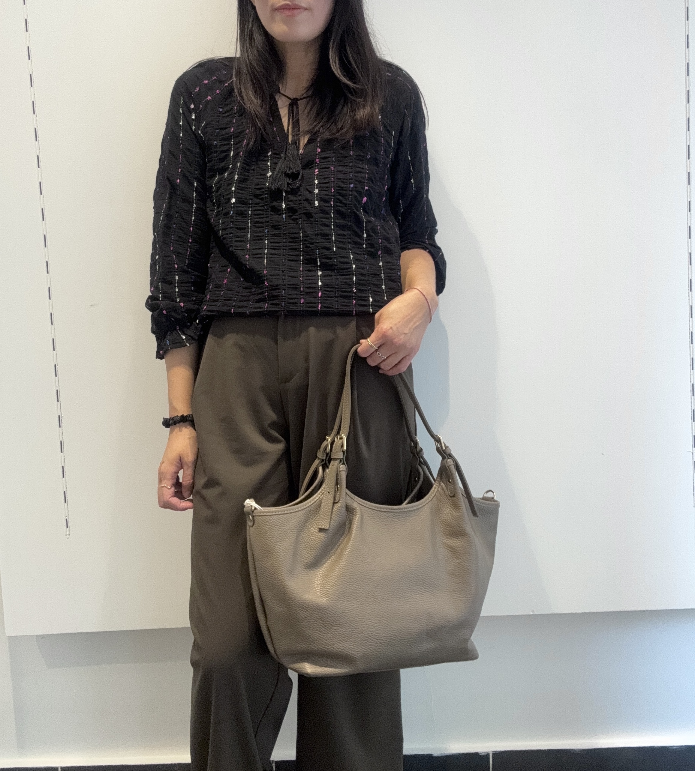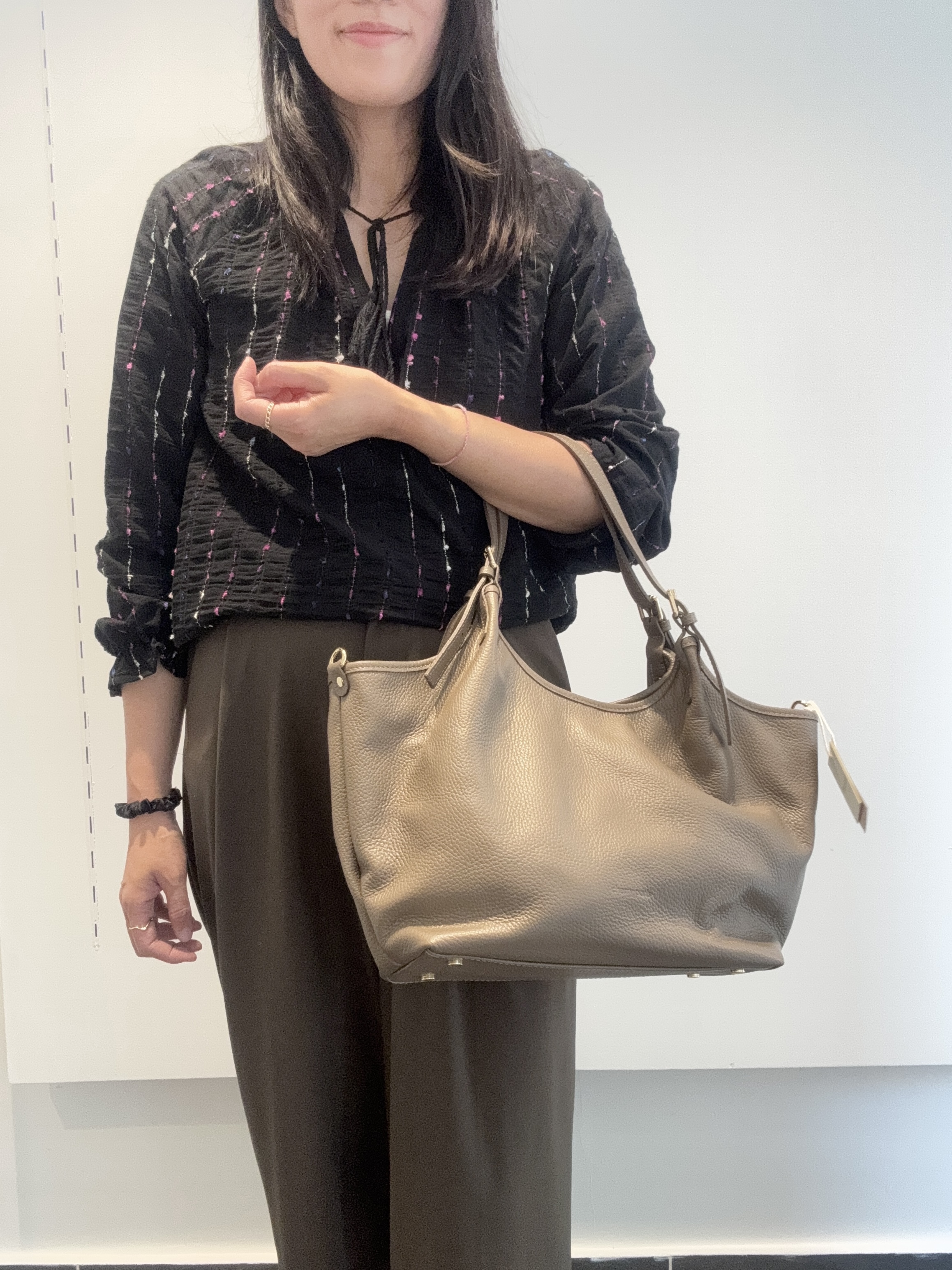• Tote bag in grained cowhide leather.