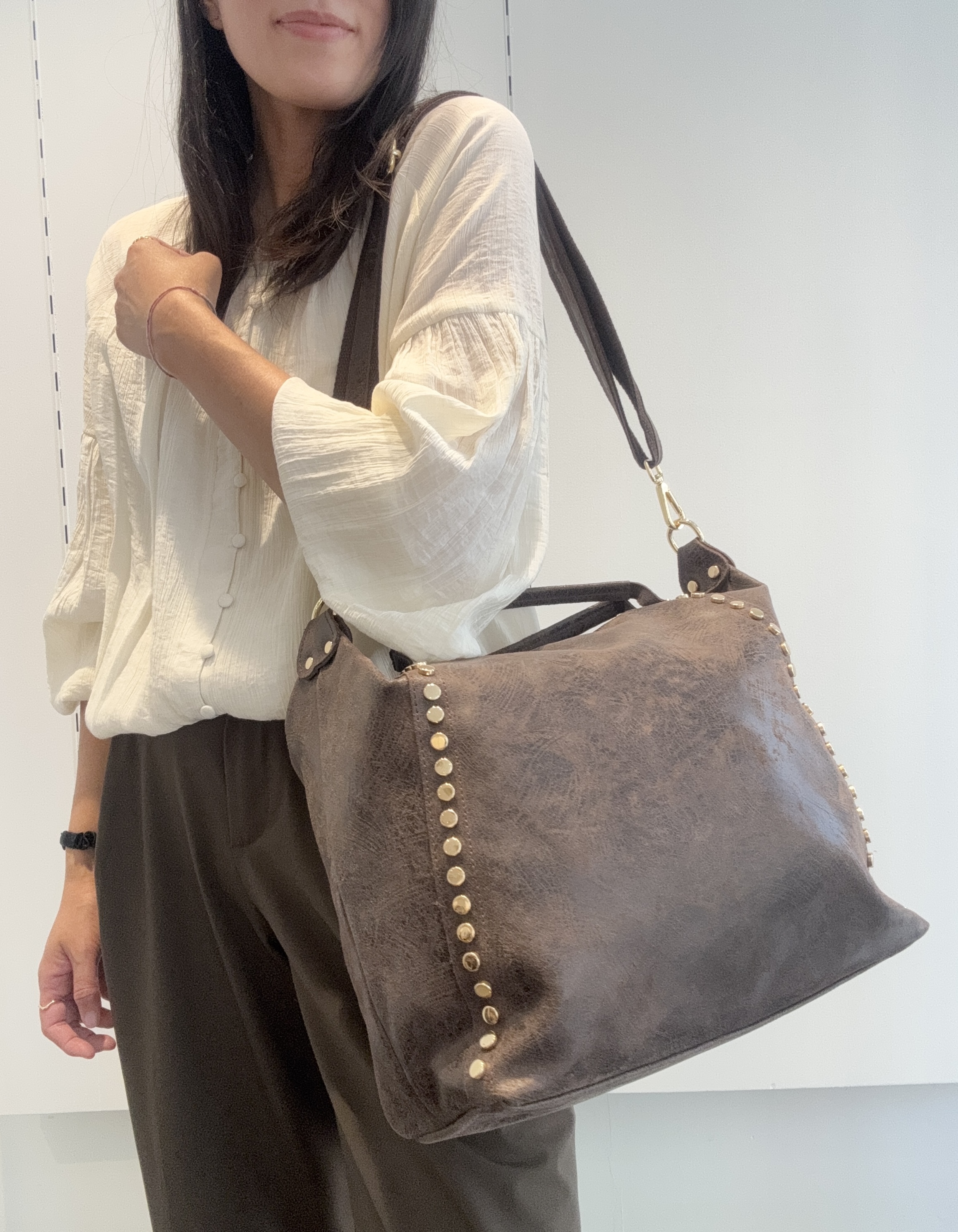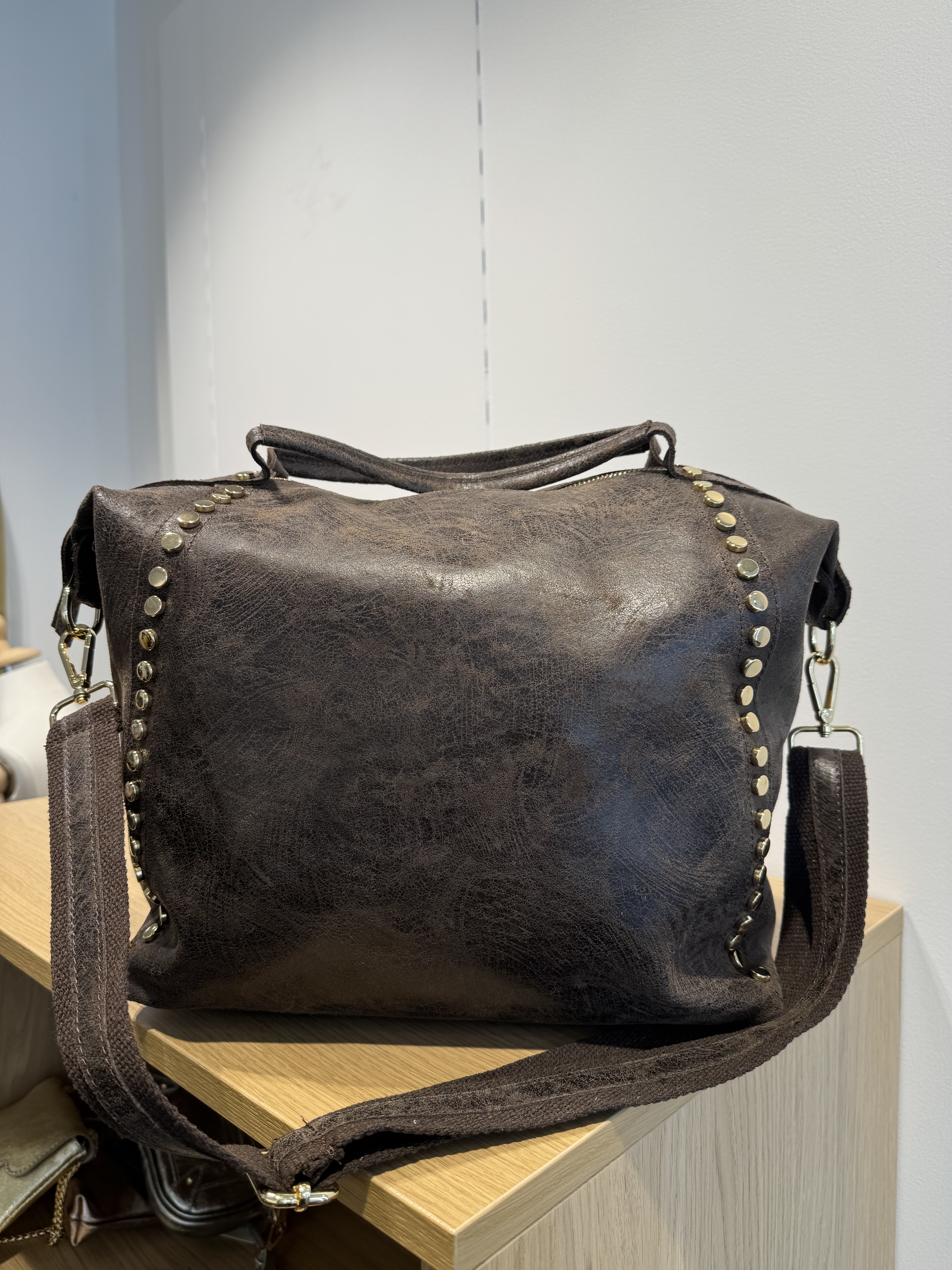 Two studded strips on the front of the bag.