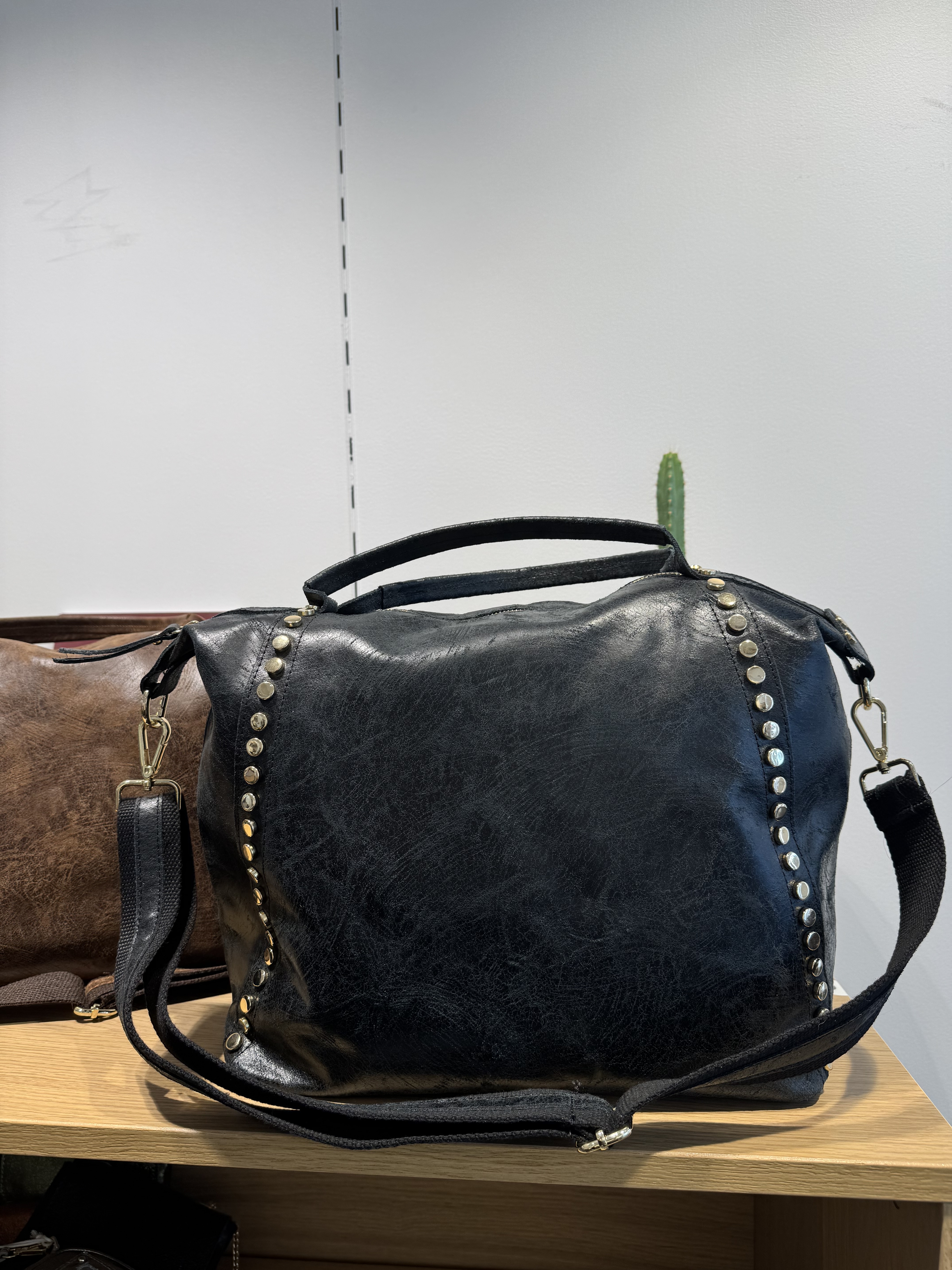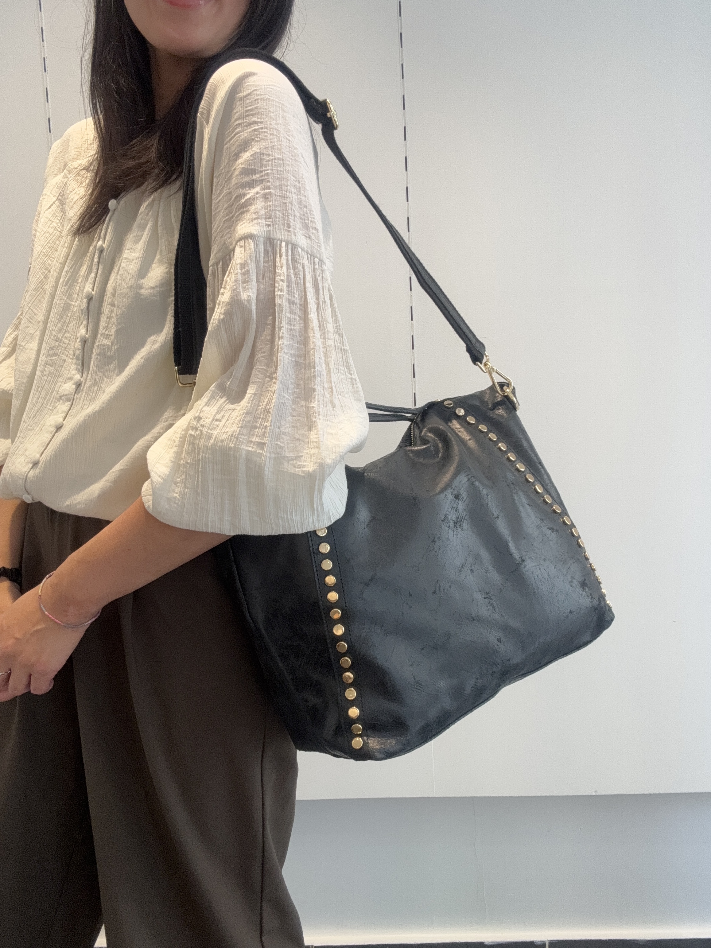 Two studded strips on the front of the bag.