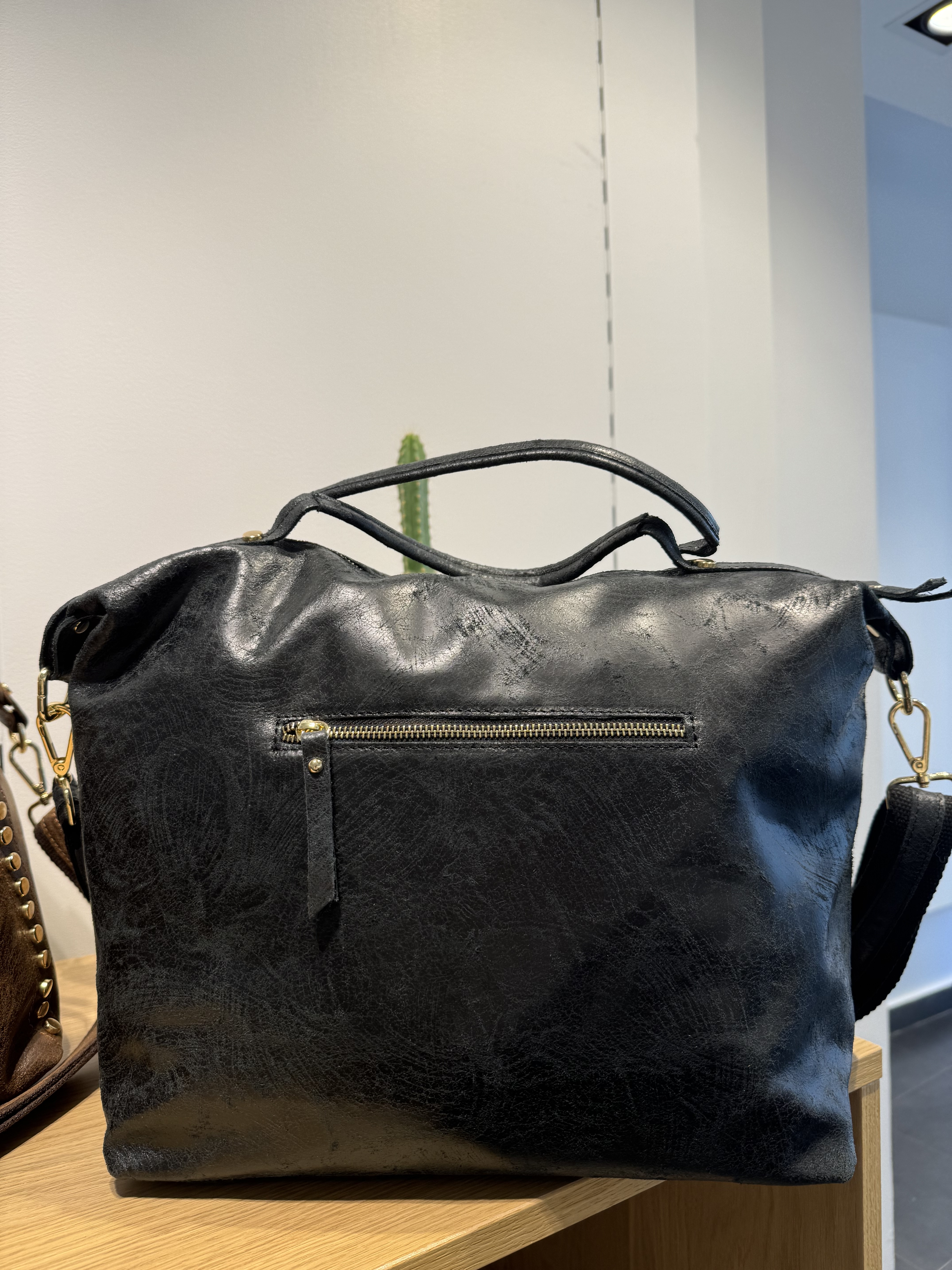 Tote bag in cowhide split leather.