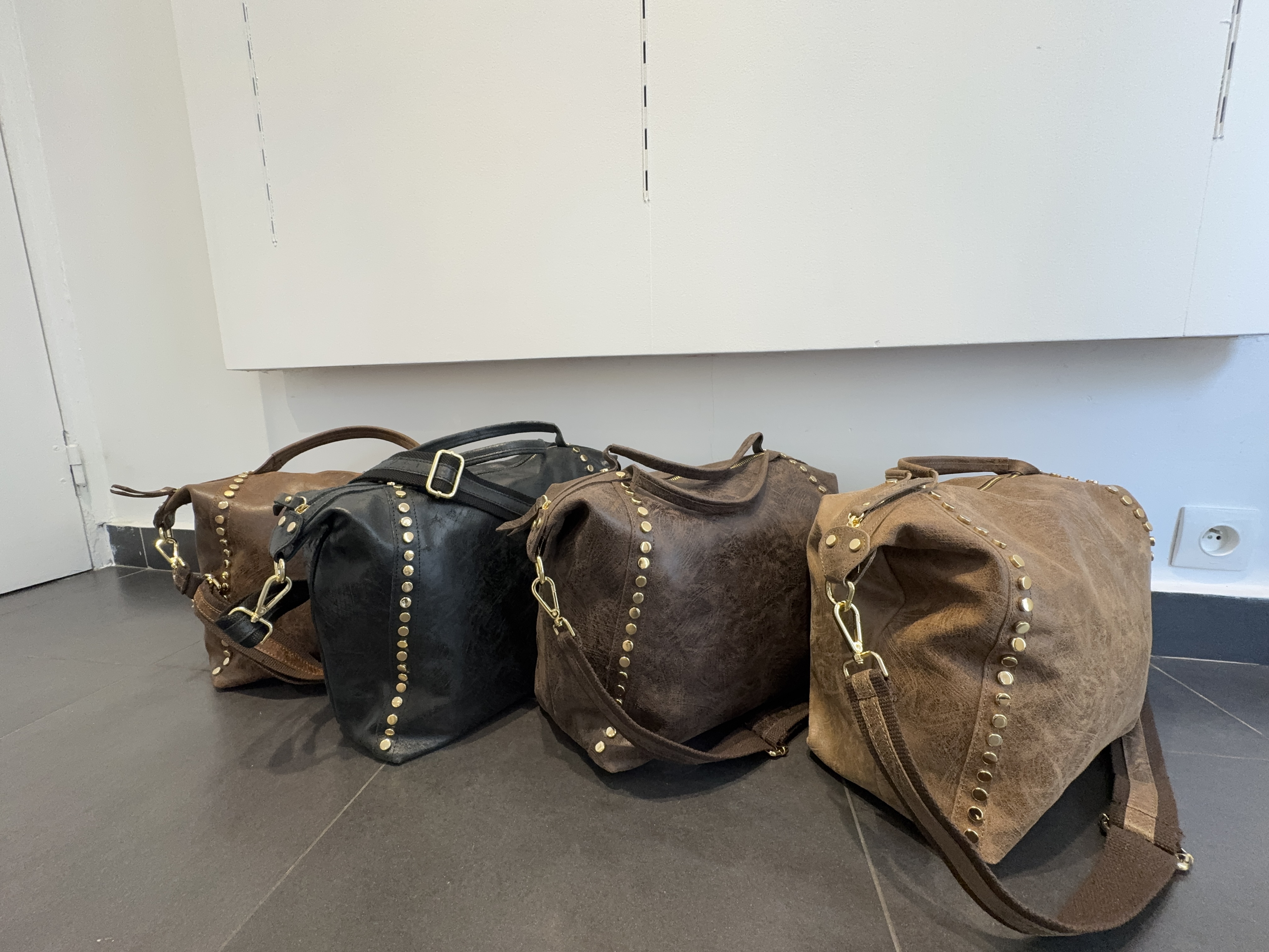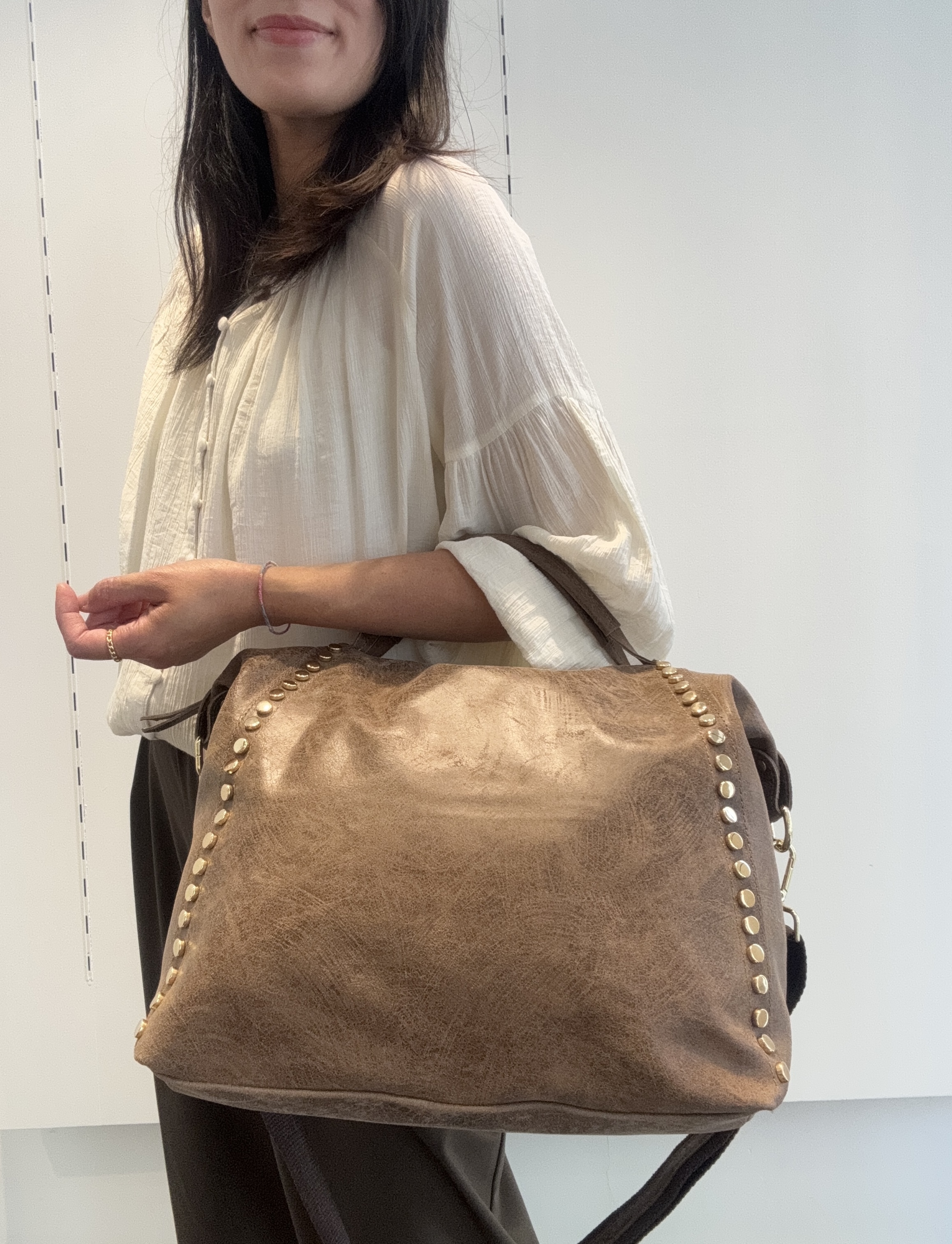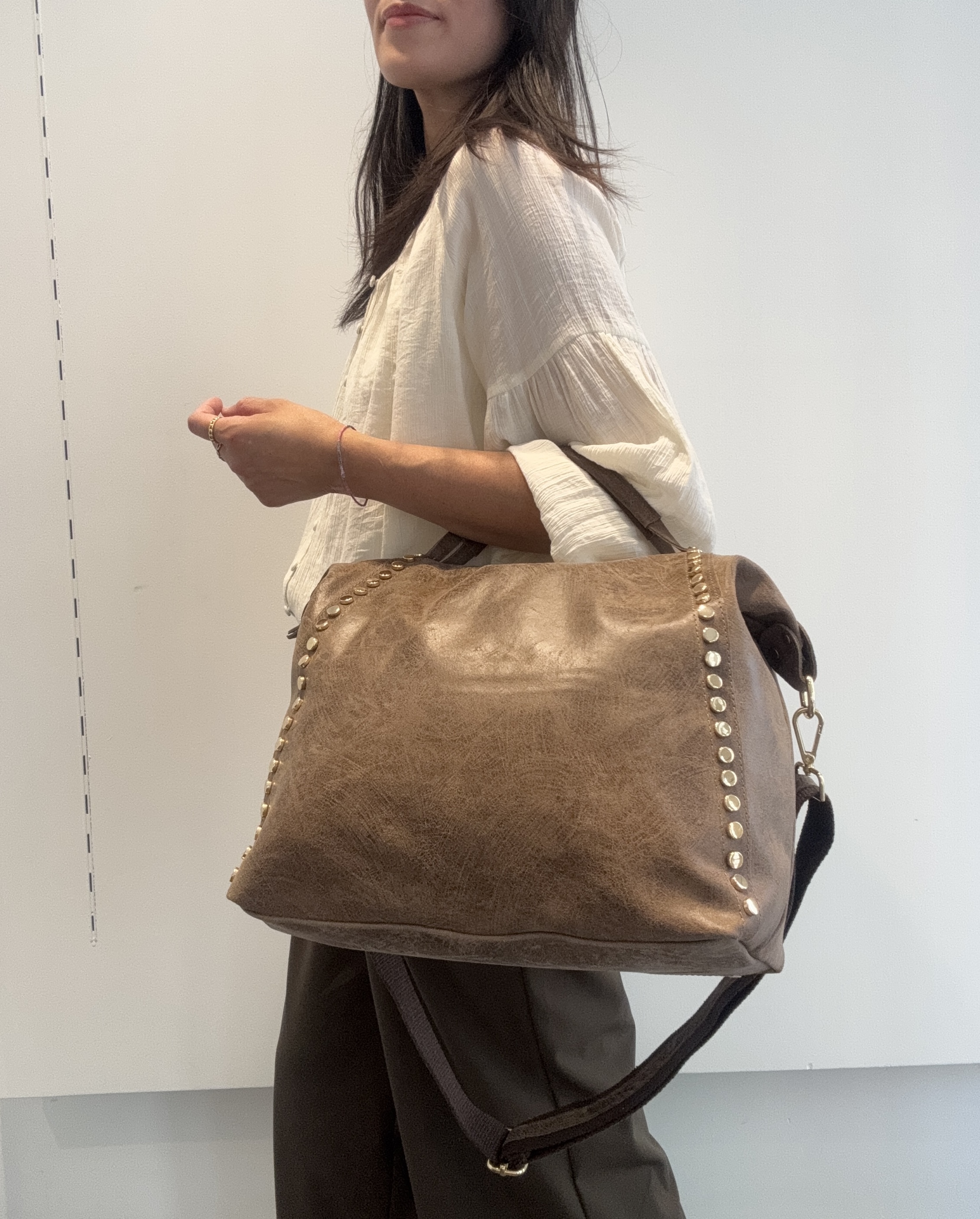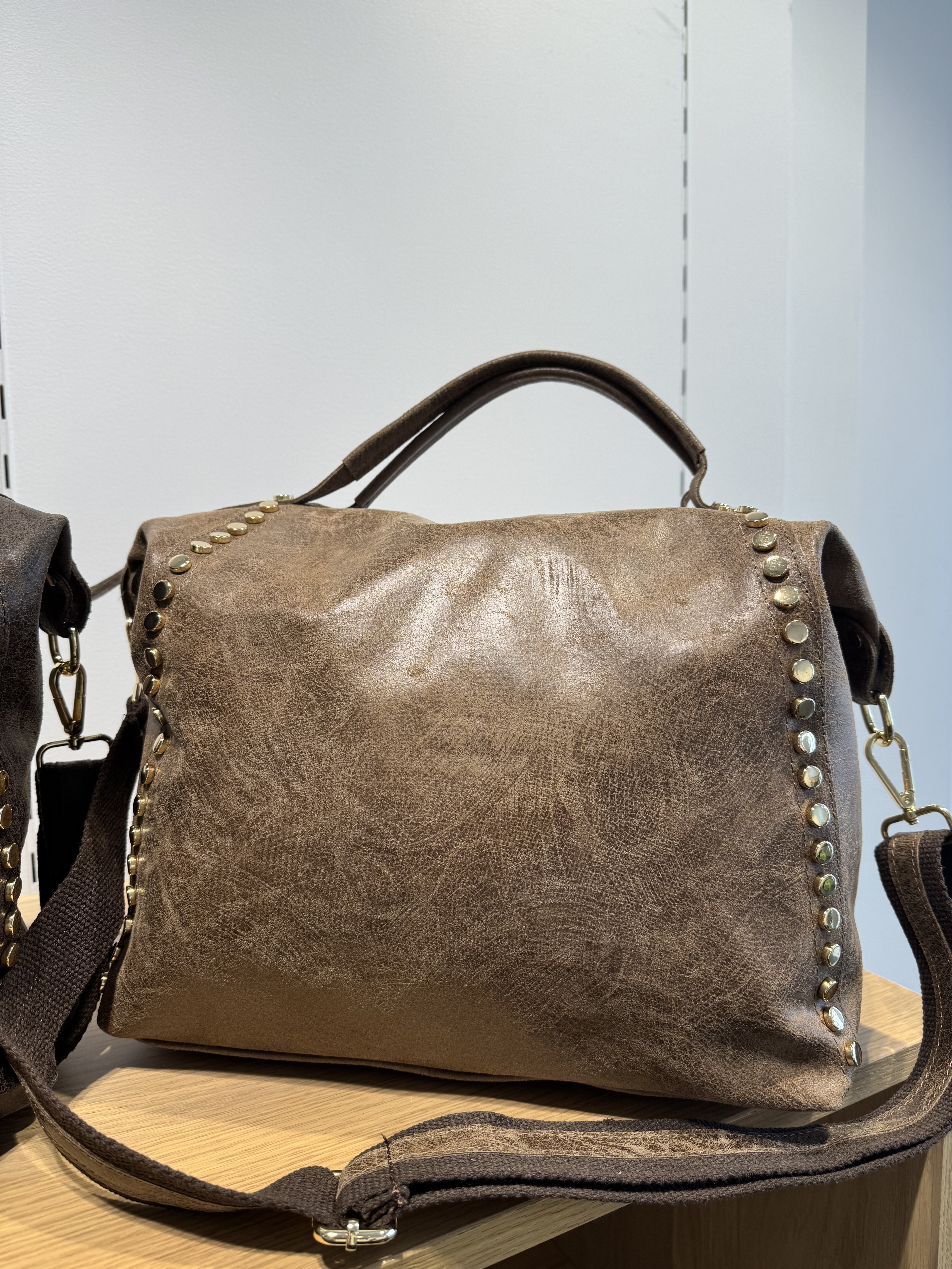 Two studded strips on the front of the bag.