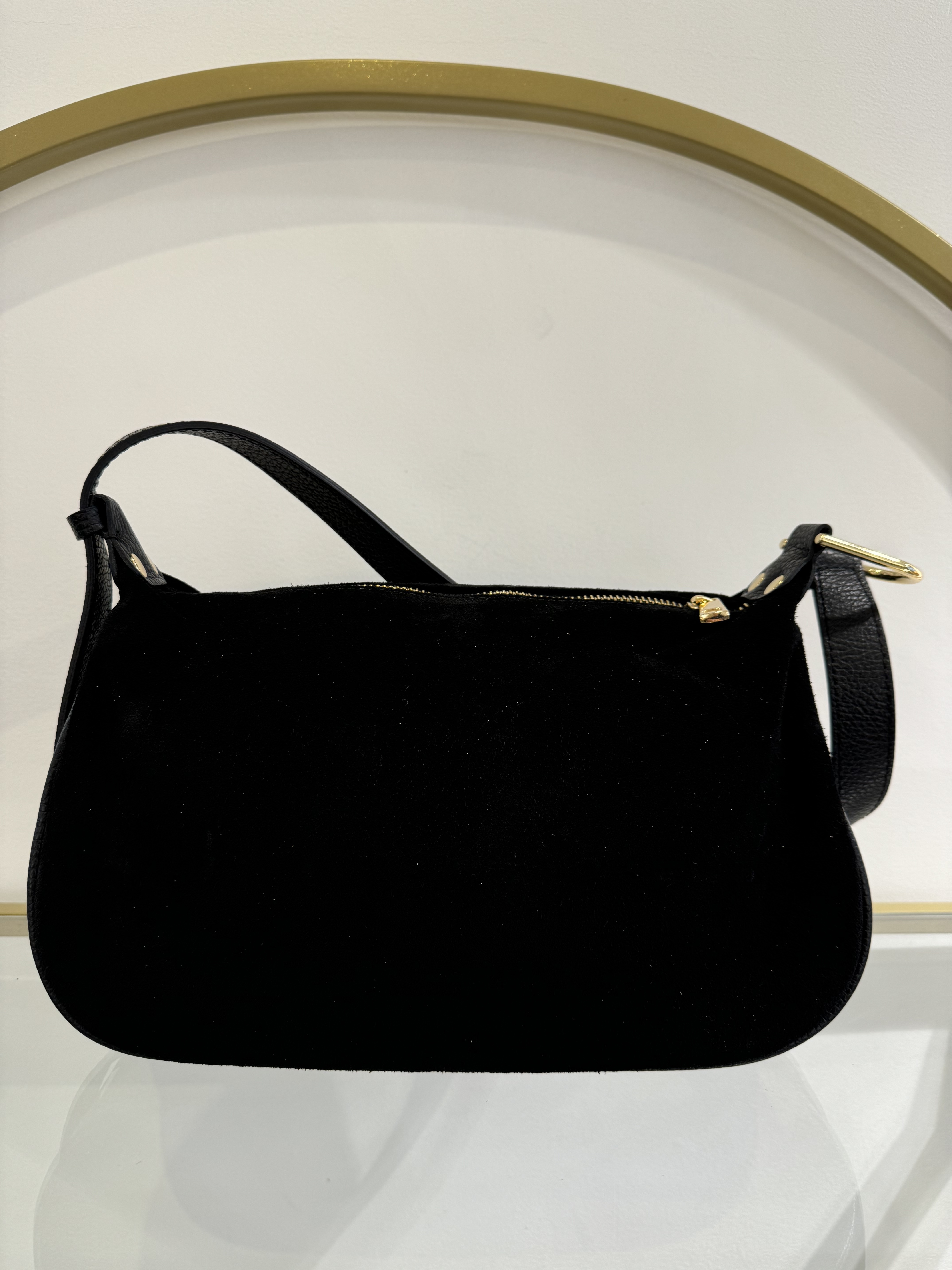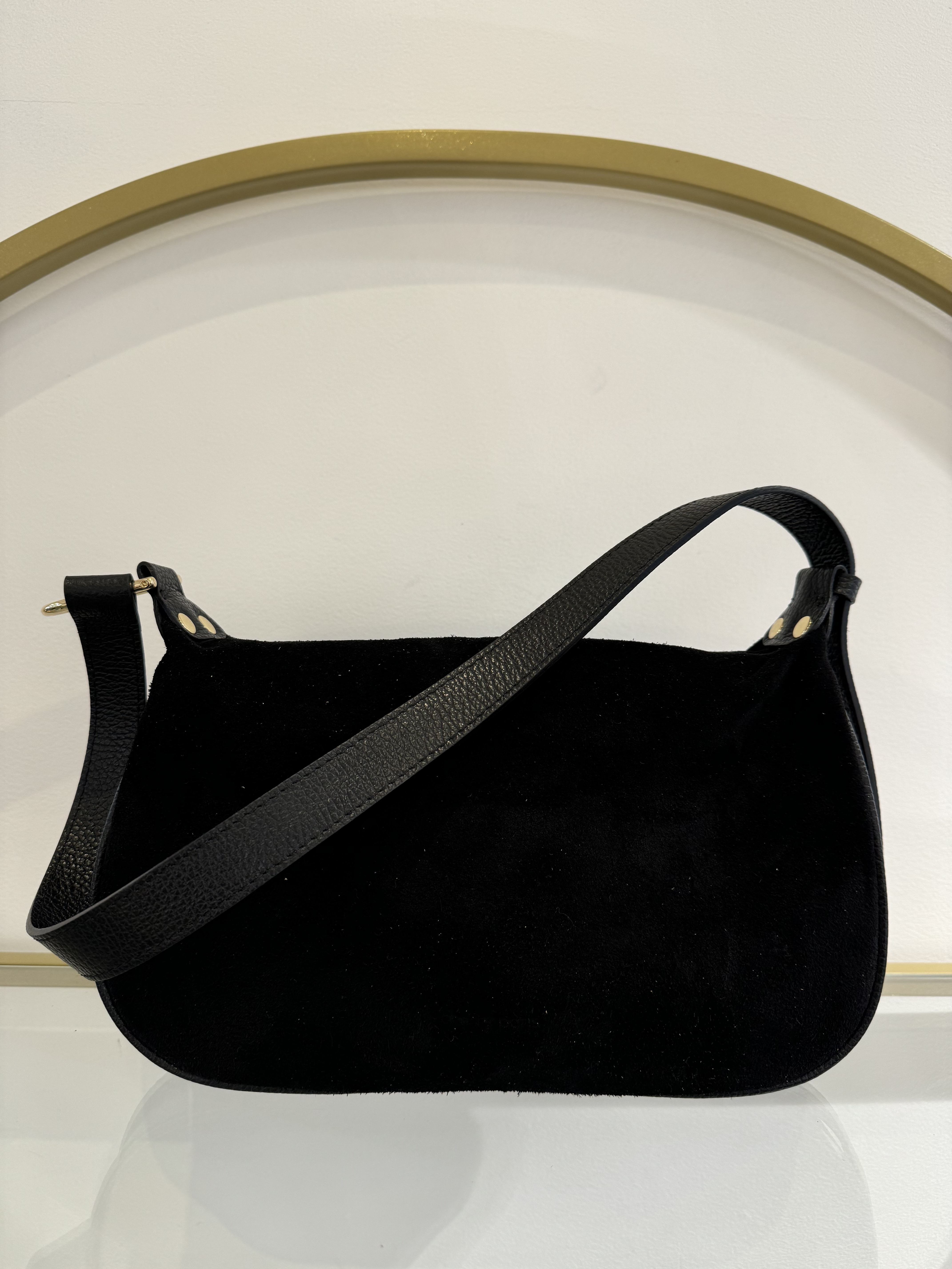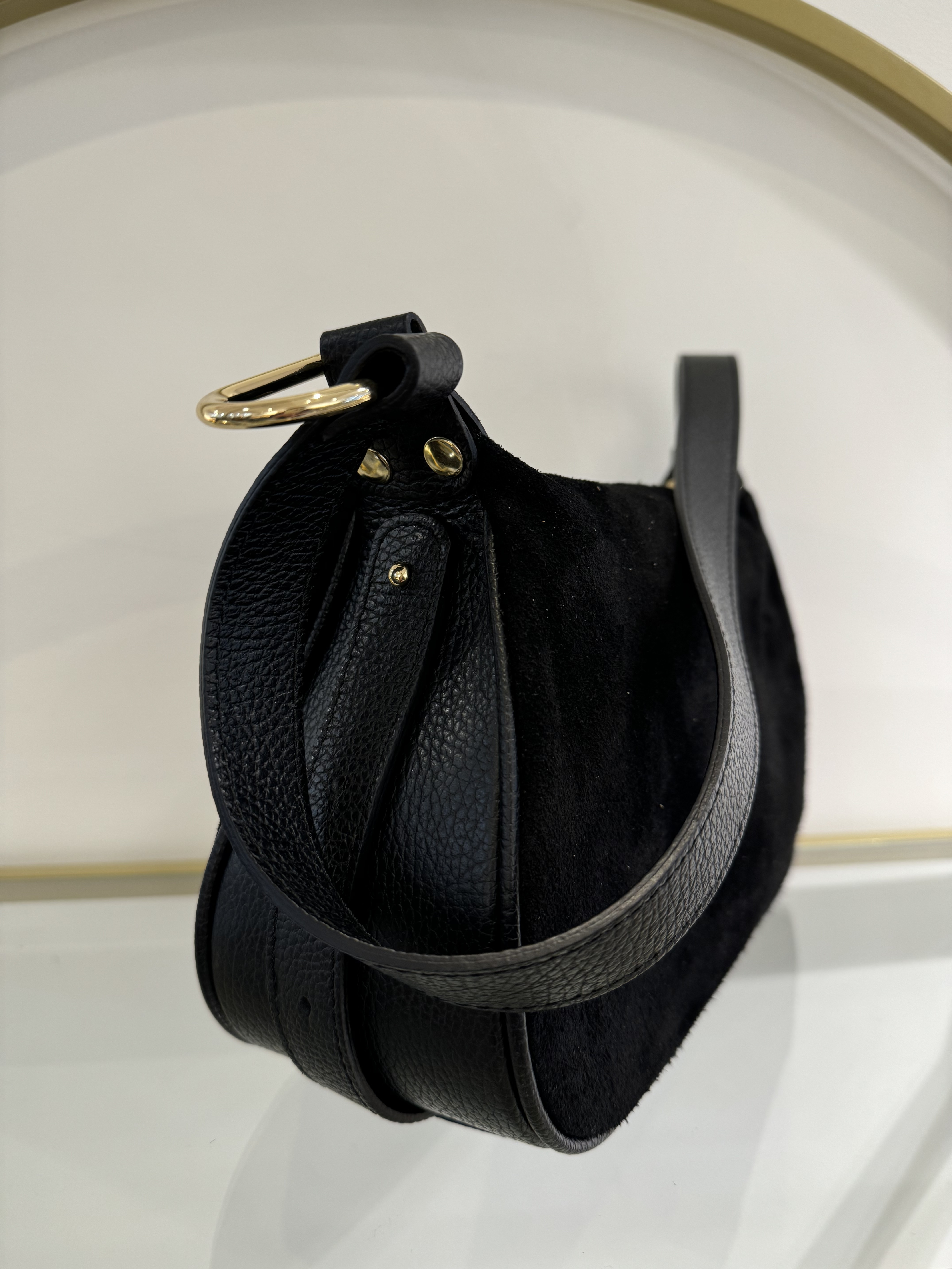 • Handbag in suede cowhide and grained cowhide.