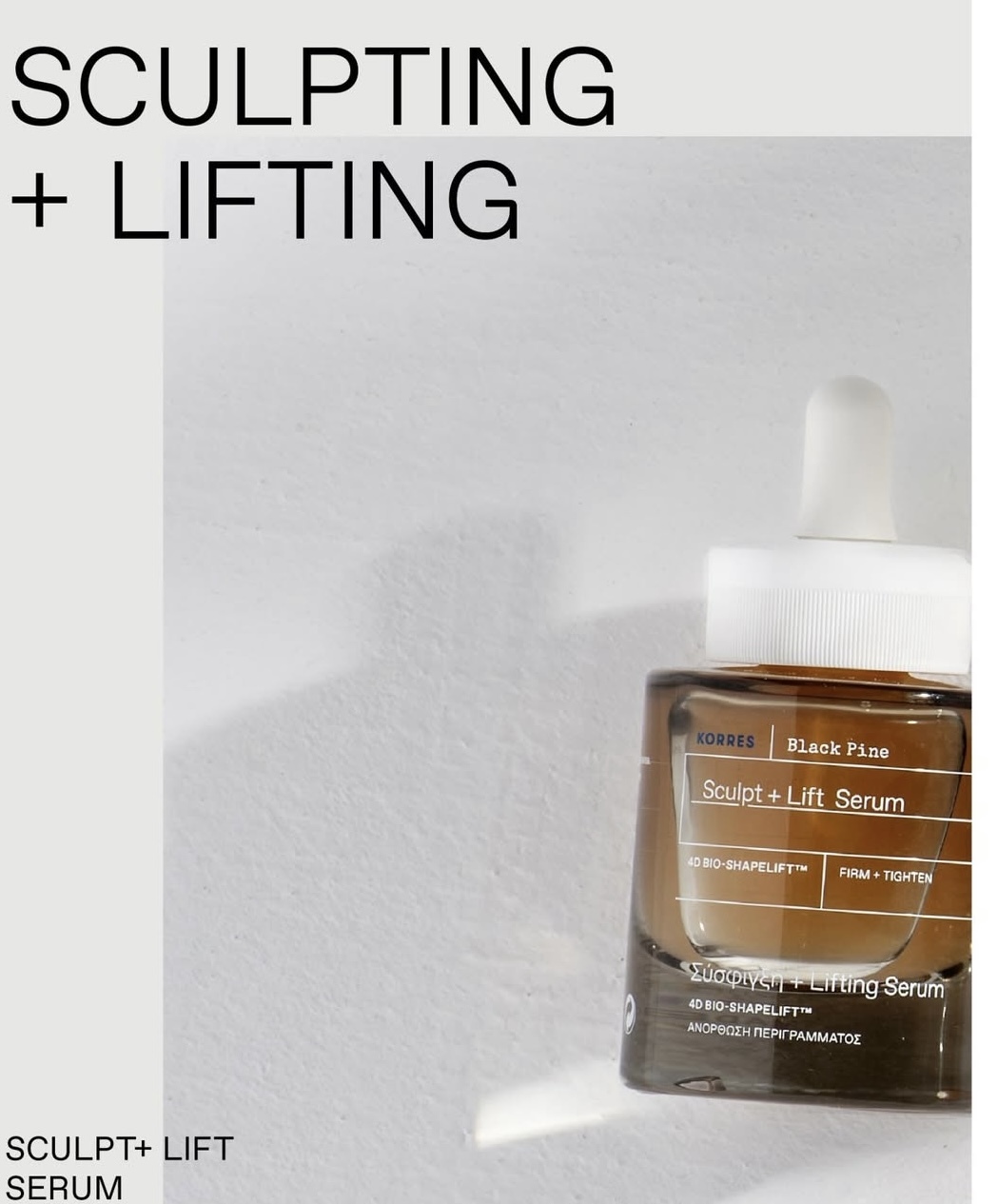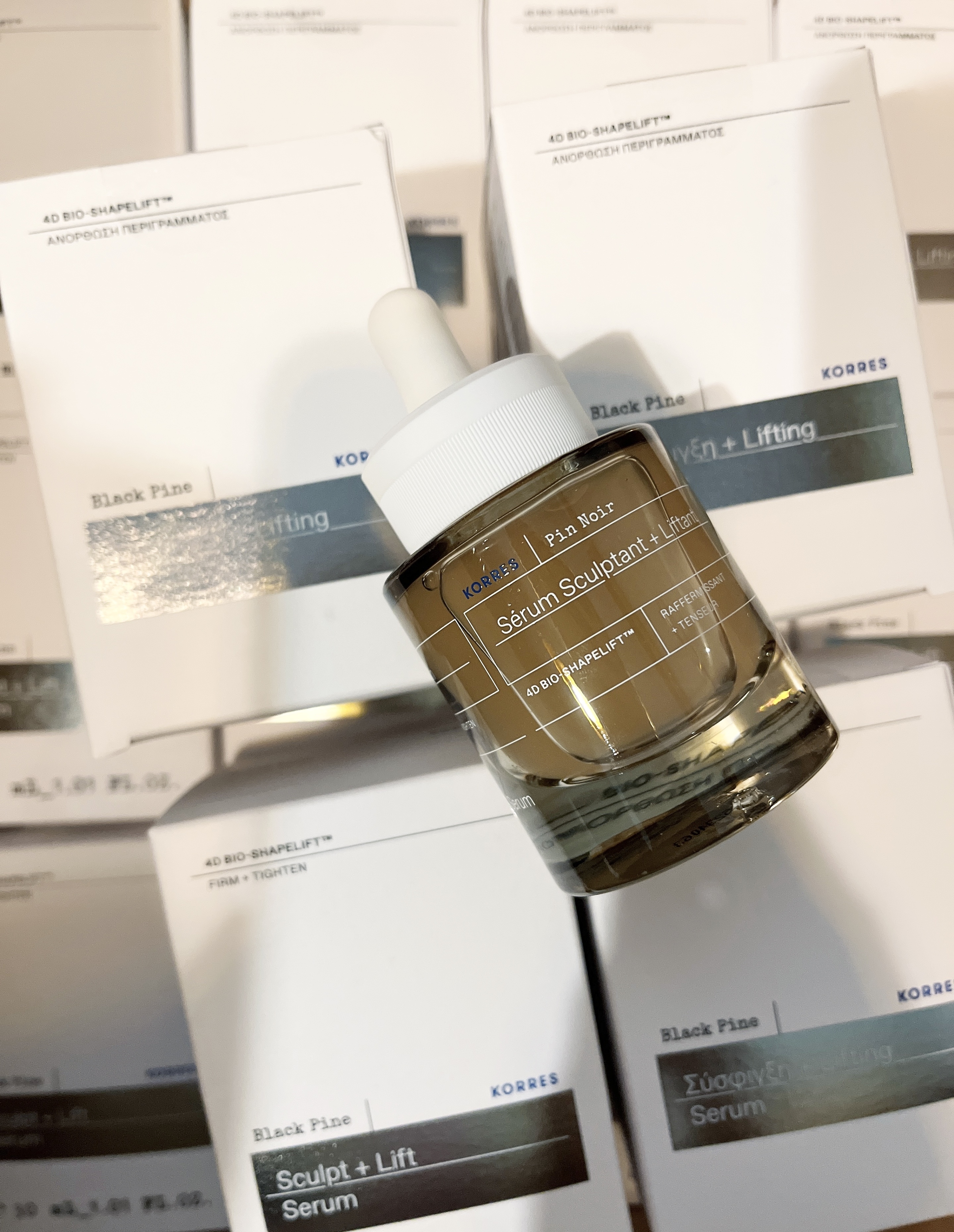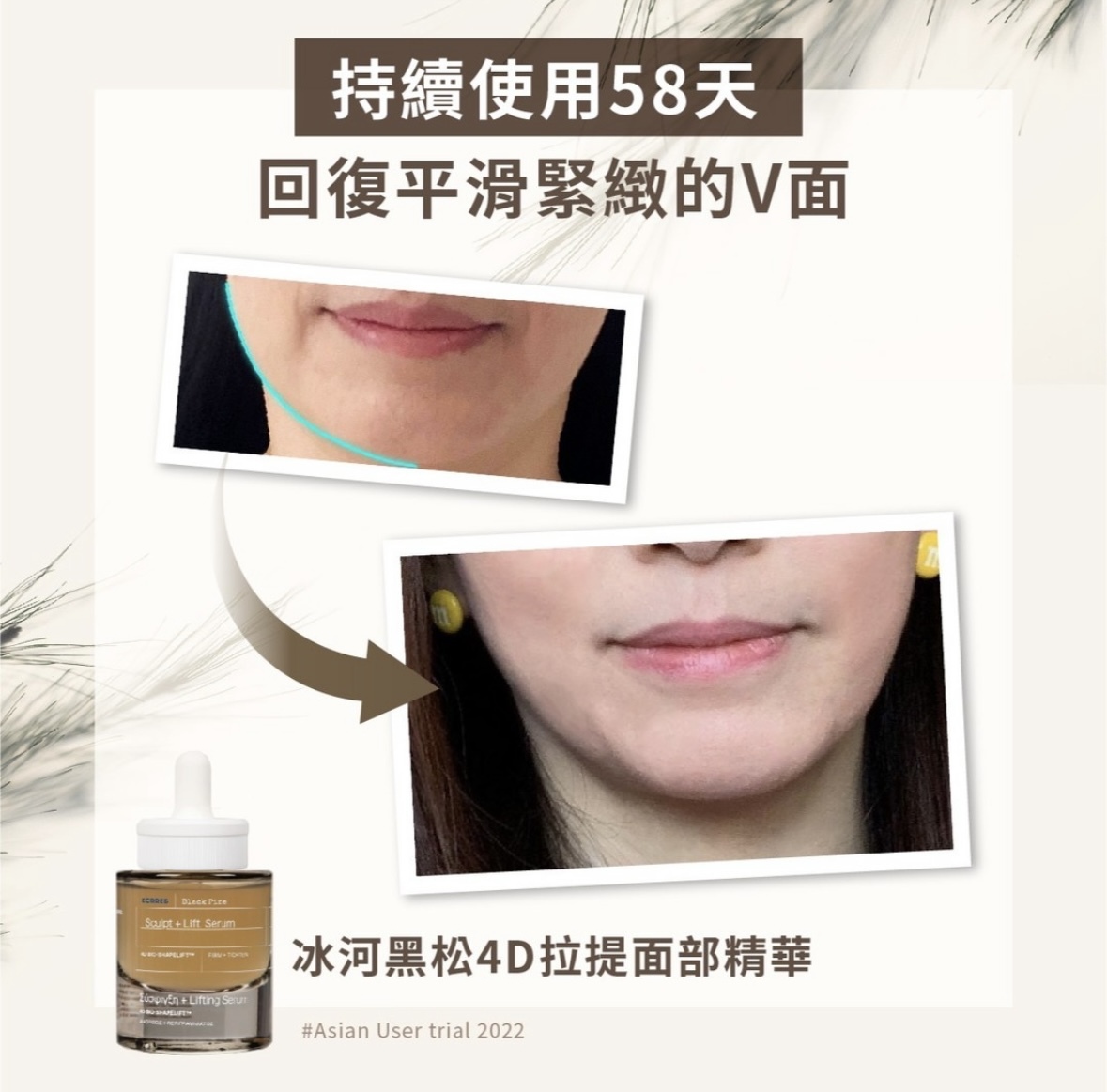 「升級版」冰河黑松4D拉提面部精華以全新 4D BIO-SHAPELIFT™ 技術,提升肌底彈力,進一步為妳塑造平滑透亮、澎潤彈實、緊緻拉提及對稱塑形之四維完美輪廓。