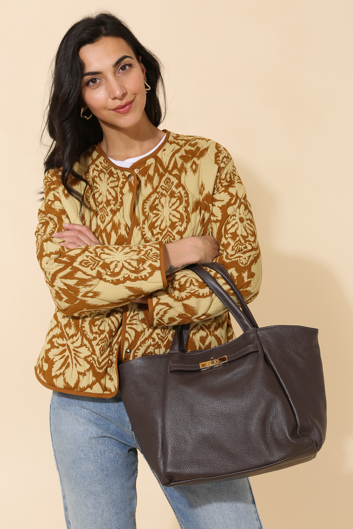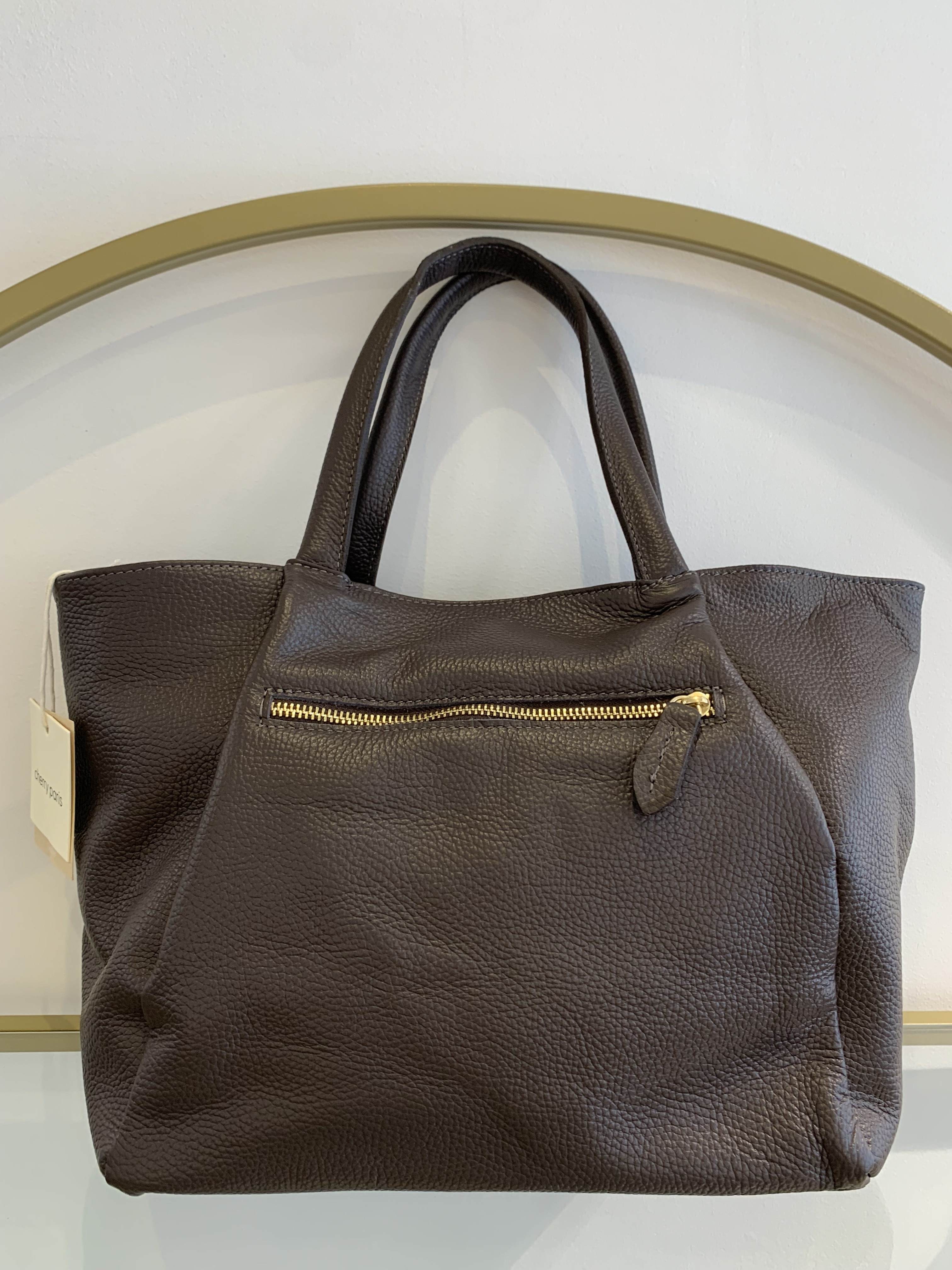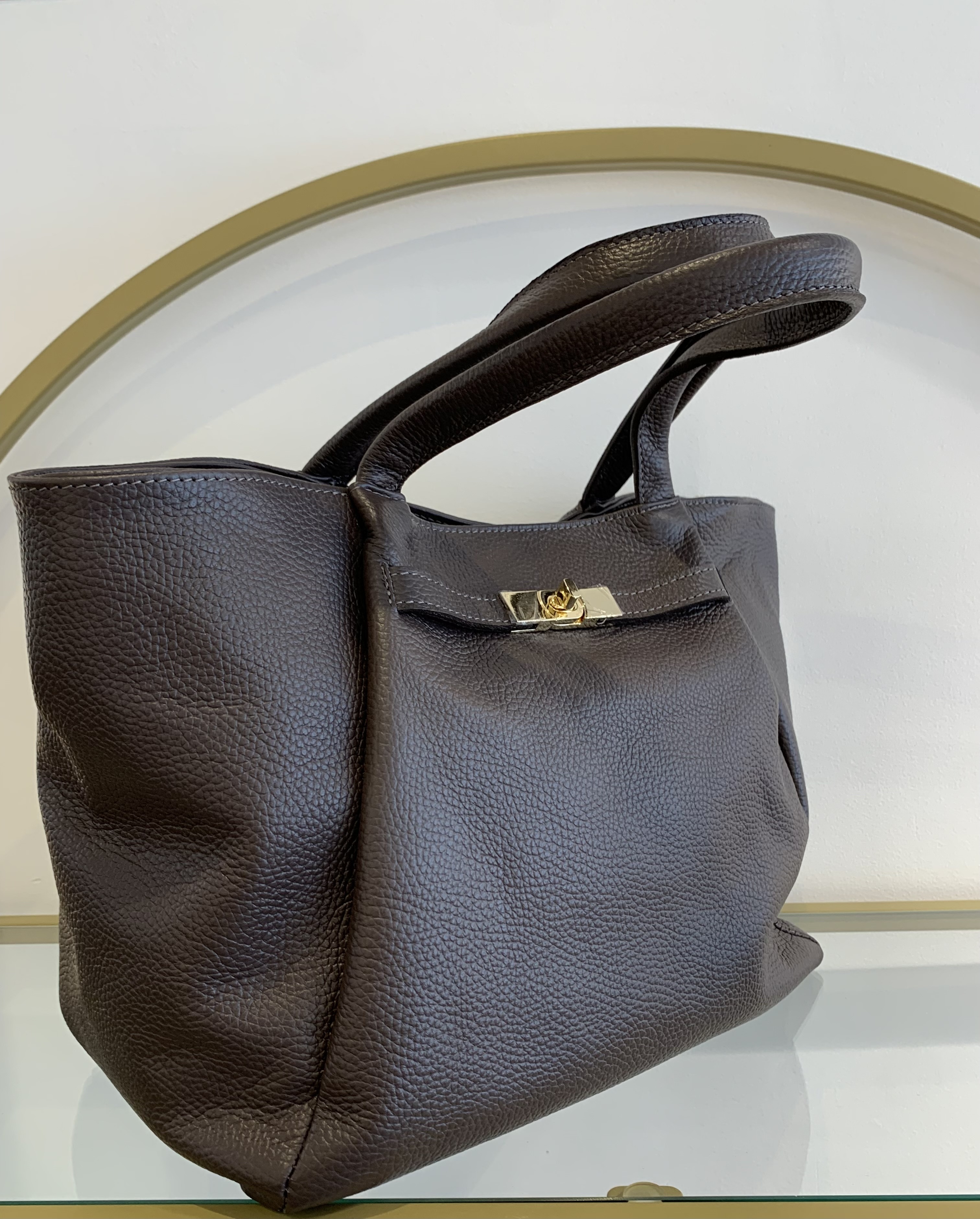 • Handbag in grained cowhide leather.