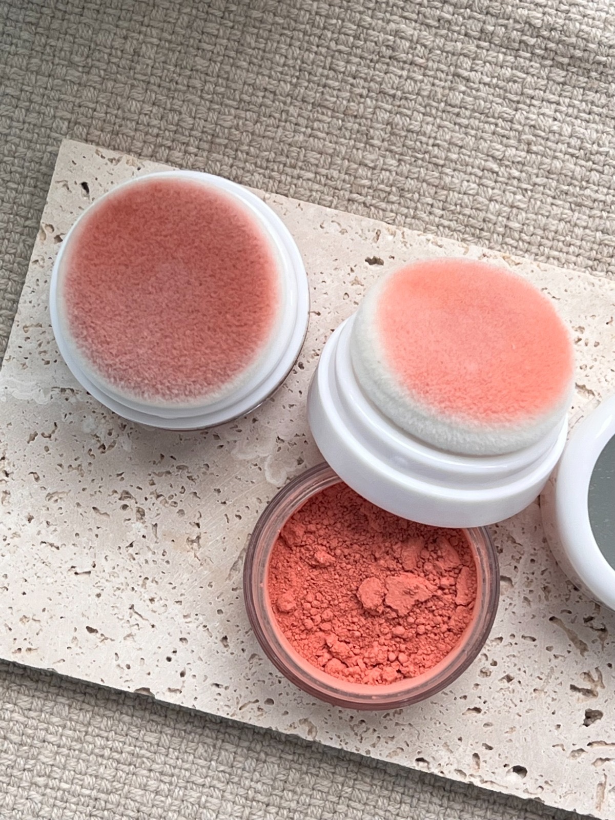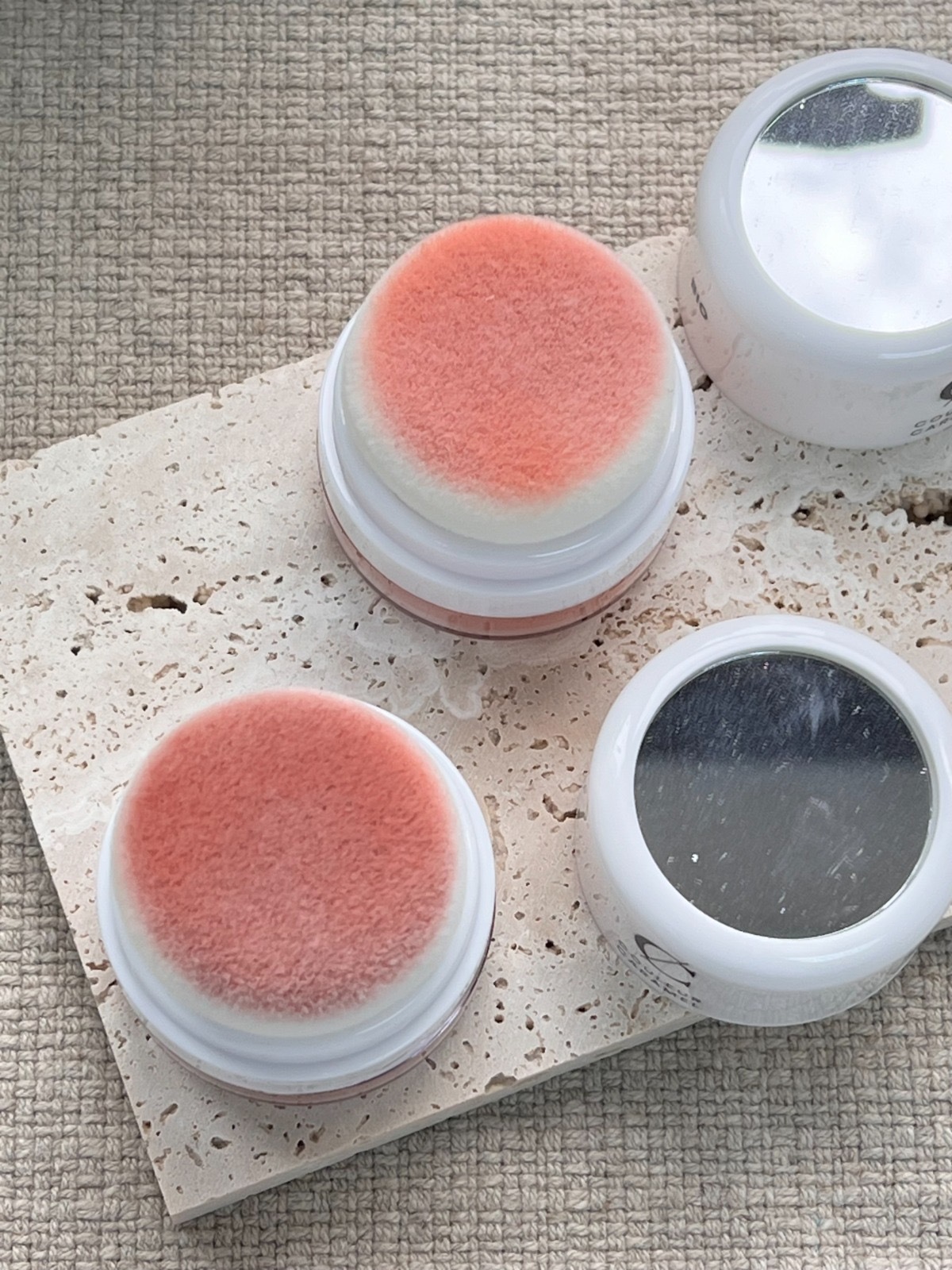 For first use, turn product over and tap lightly until puff becomes tinted. Before each use, turn product over and tap lightly to achieve optimal diffusion. Loose powder blush to apply to cheeks.