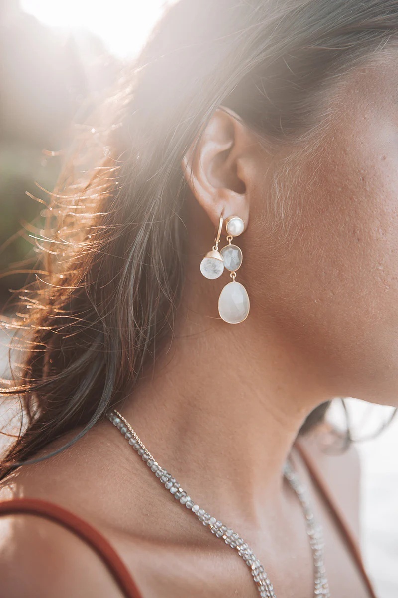 Each piece is adorned with natural stones , making each piece of jewelry unique through the subtle variation in shapes and colors.