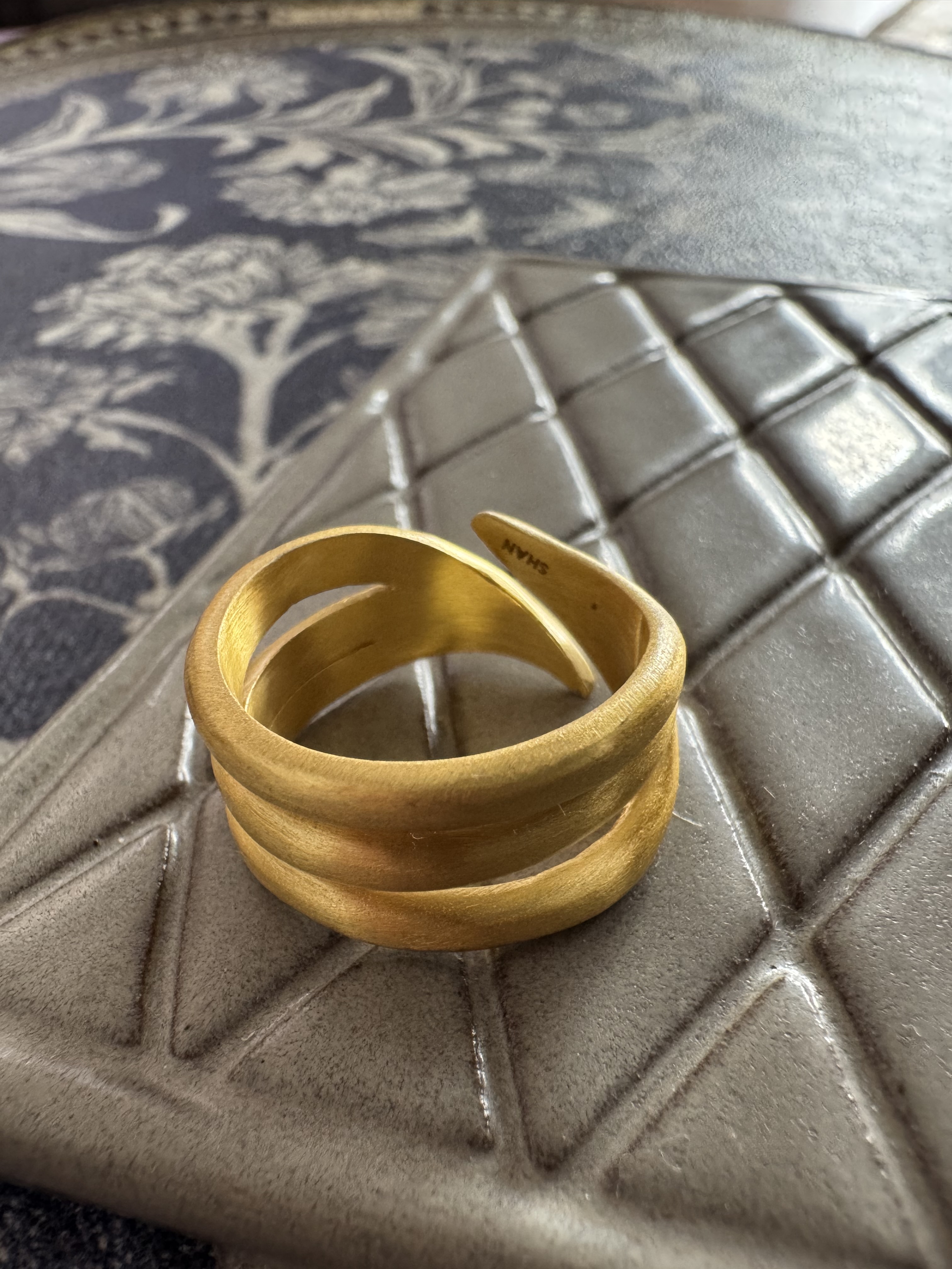 • material brass based ring with 18 karat gold inlay