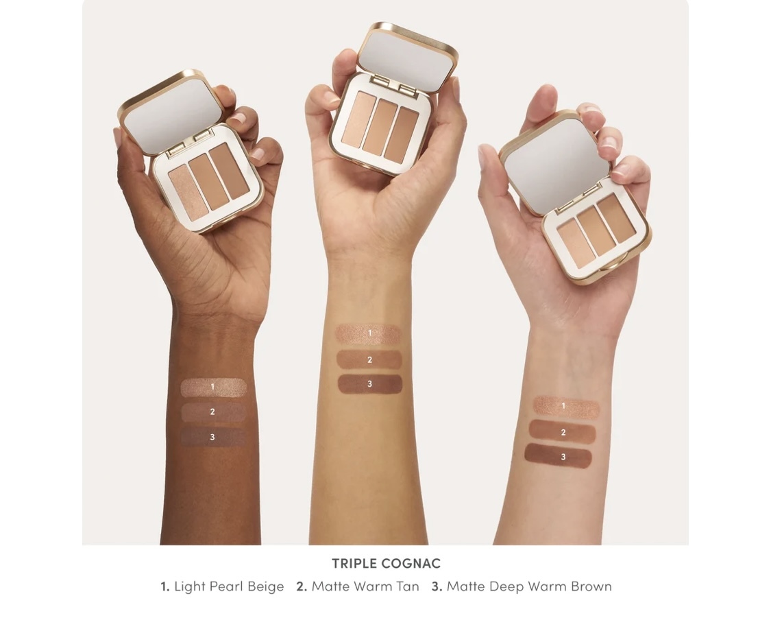 3種不同的顏色組合, 輕易處理日妝及晚妝 ,亦能締造不同層次的煙燻眼。金色,可作打T位、眉骨、顴骨及鎖骨的光位。