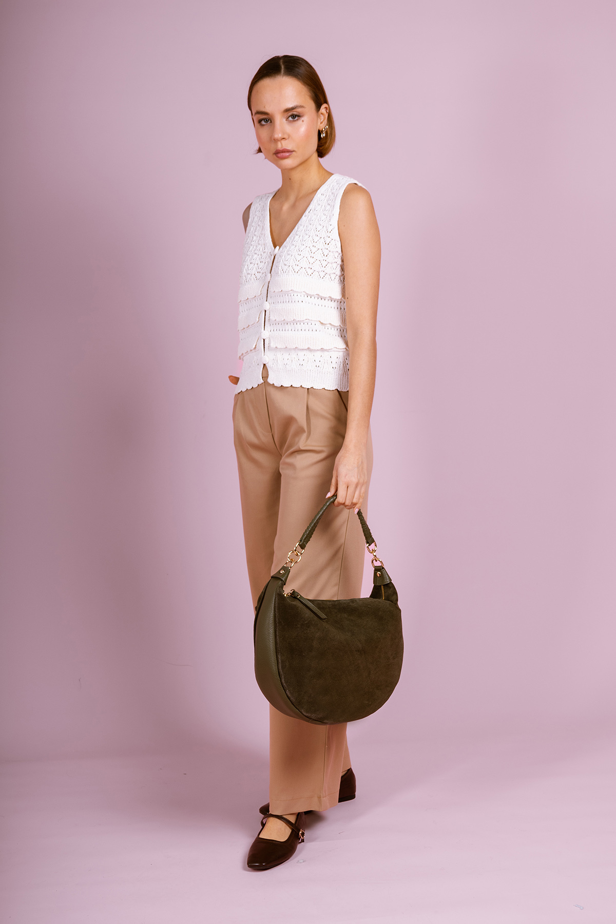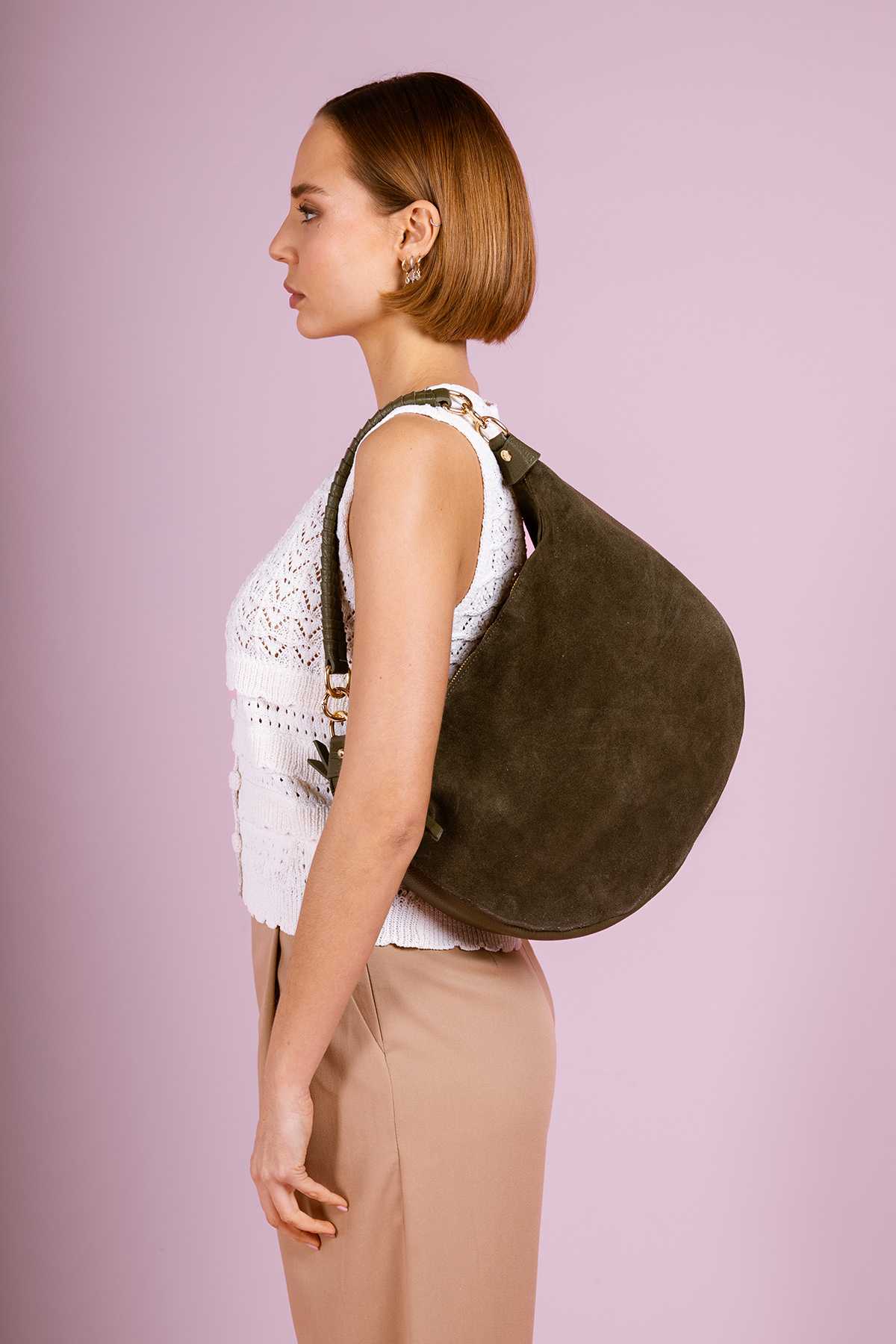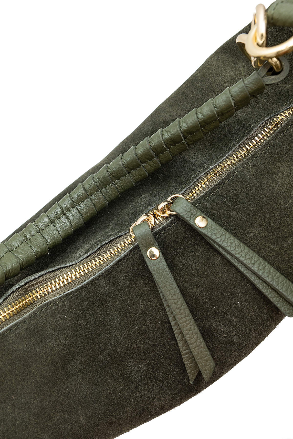 • Shoulder bag in split suede cowhide leather and grained cowhide leather.