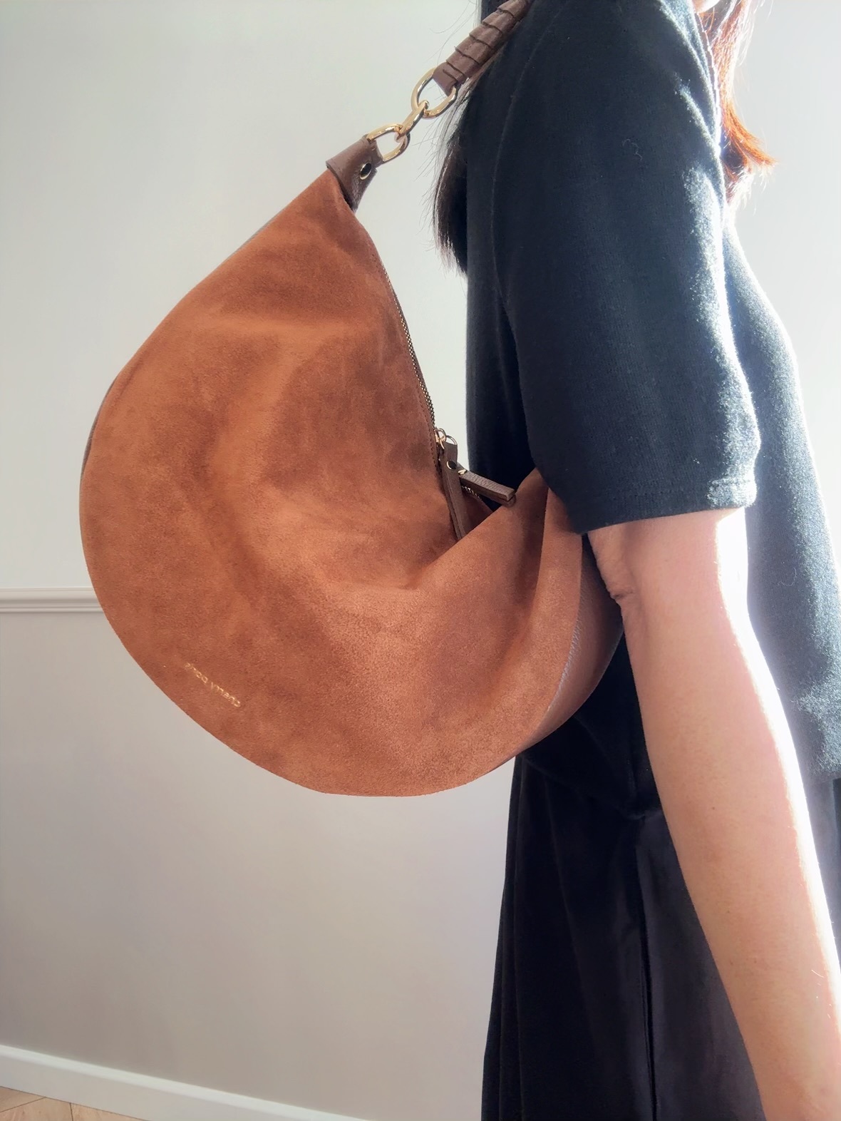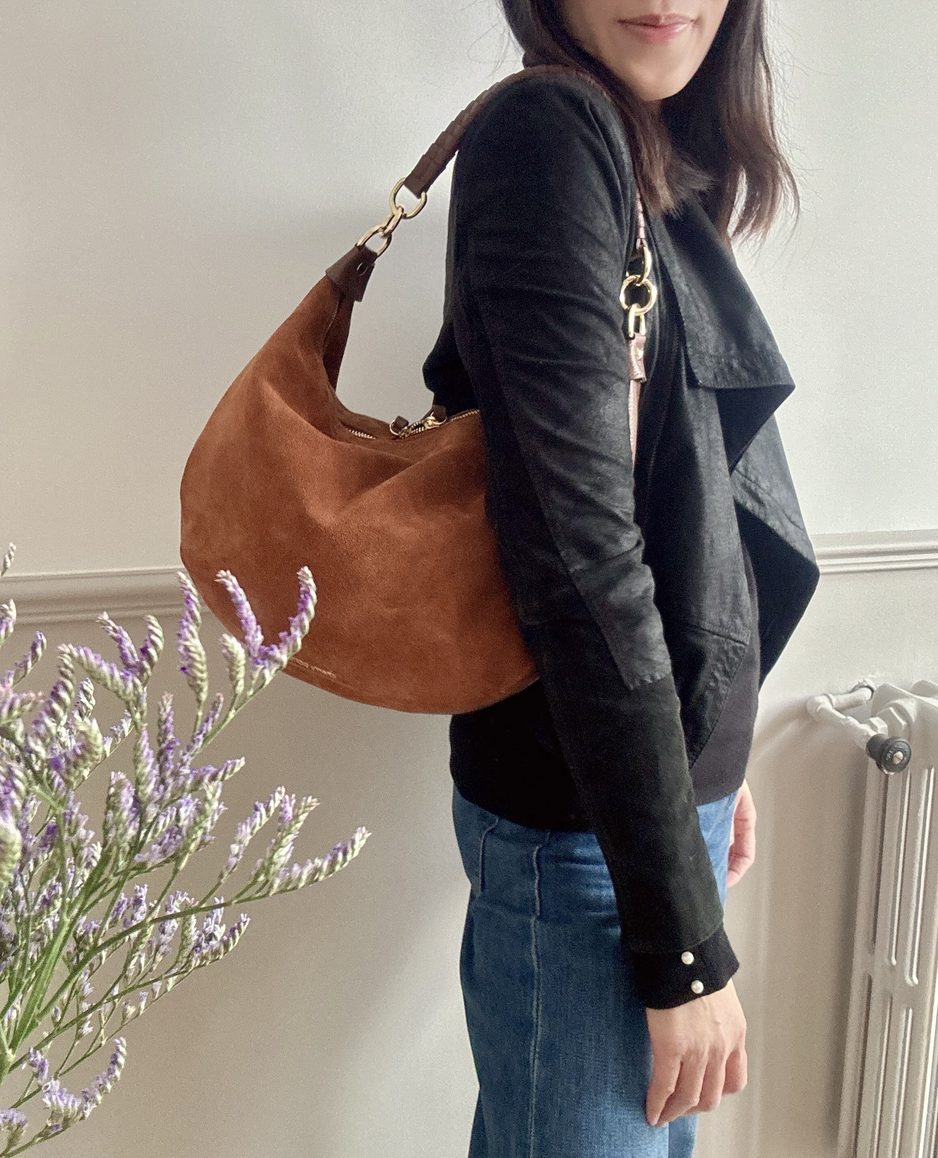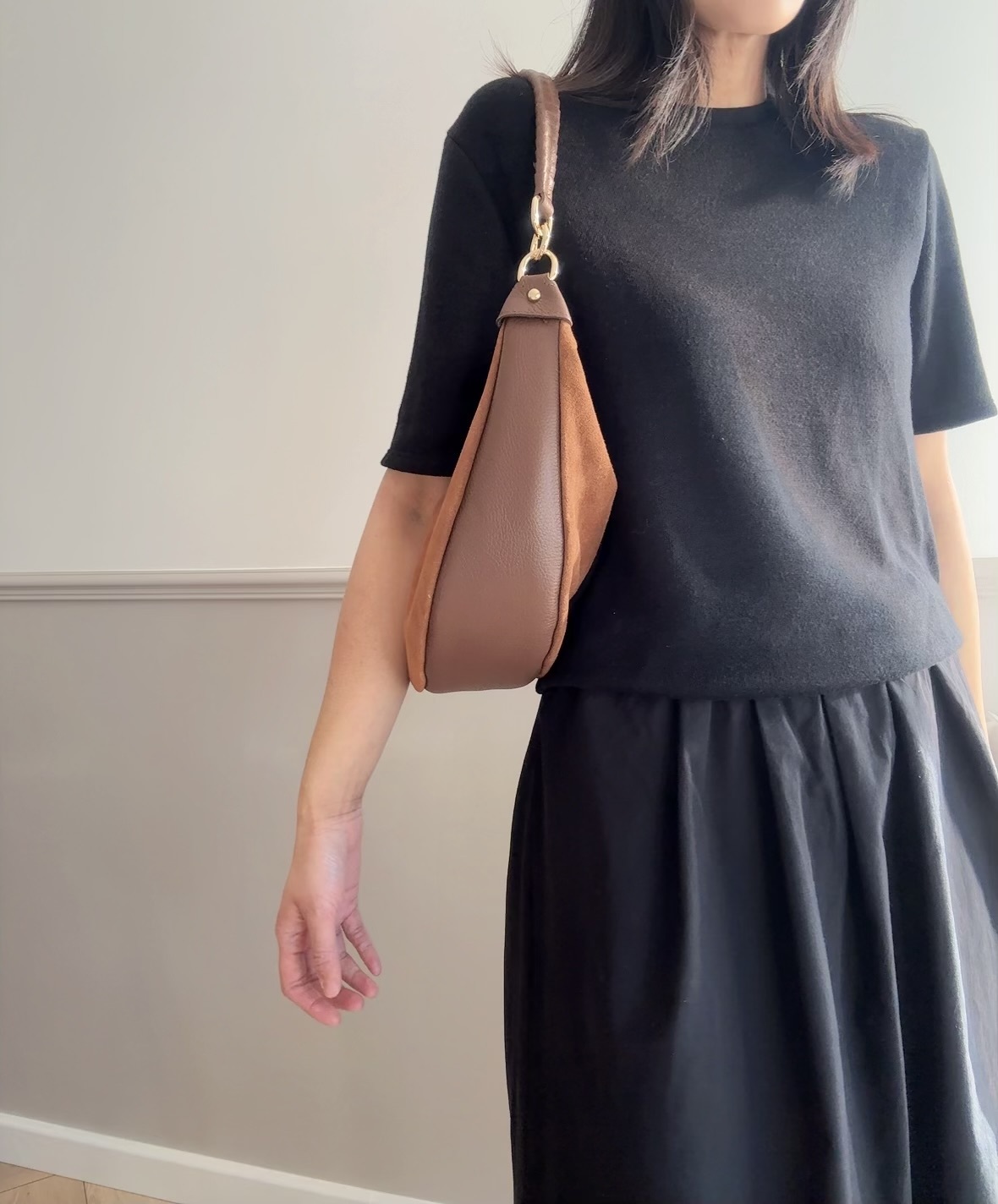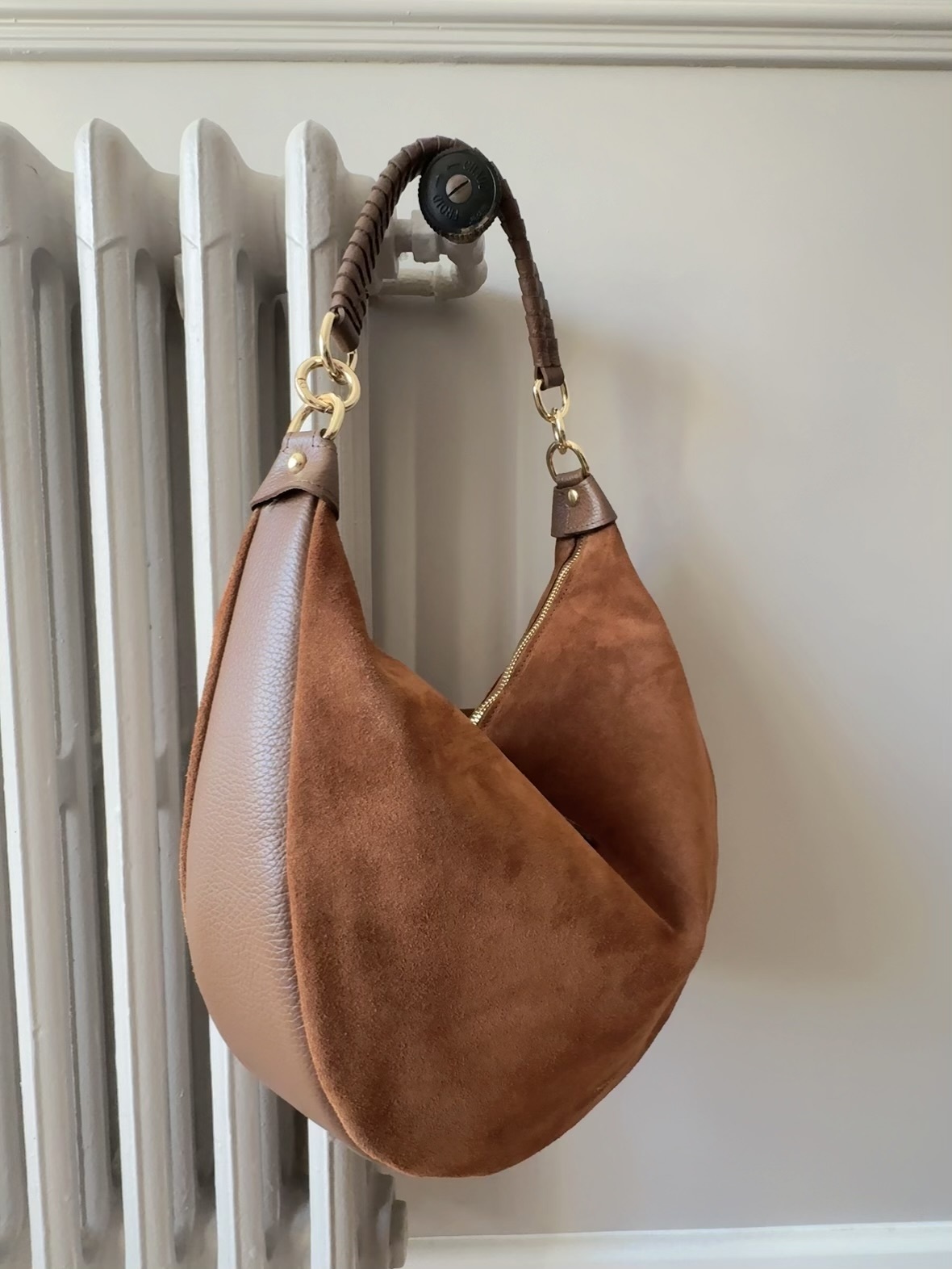• Shoulder bag in split suede cowhide leather and grained cowhide leather.