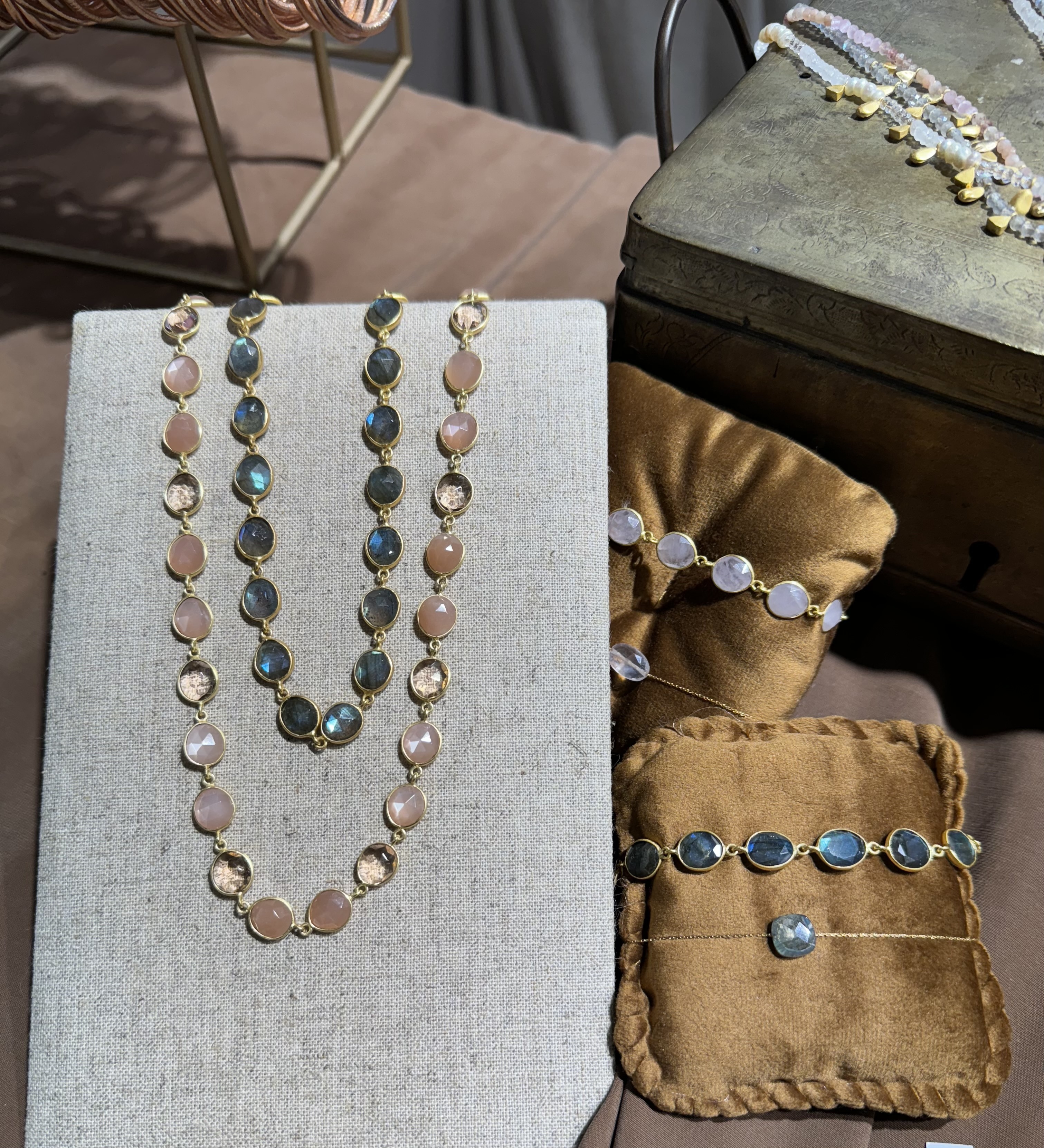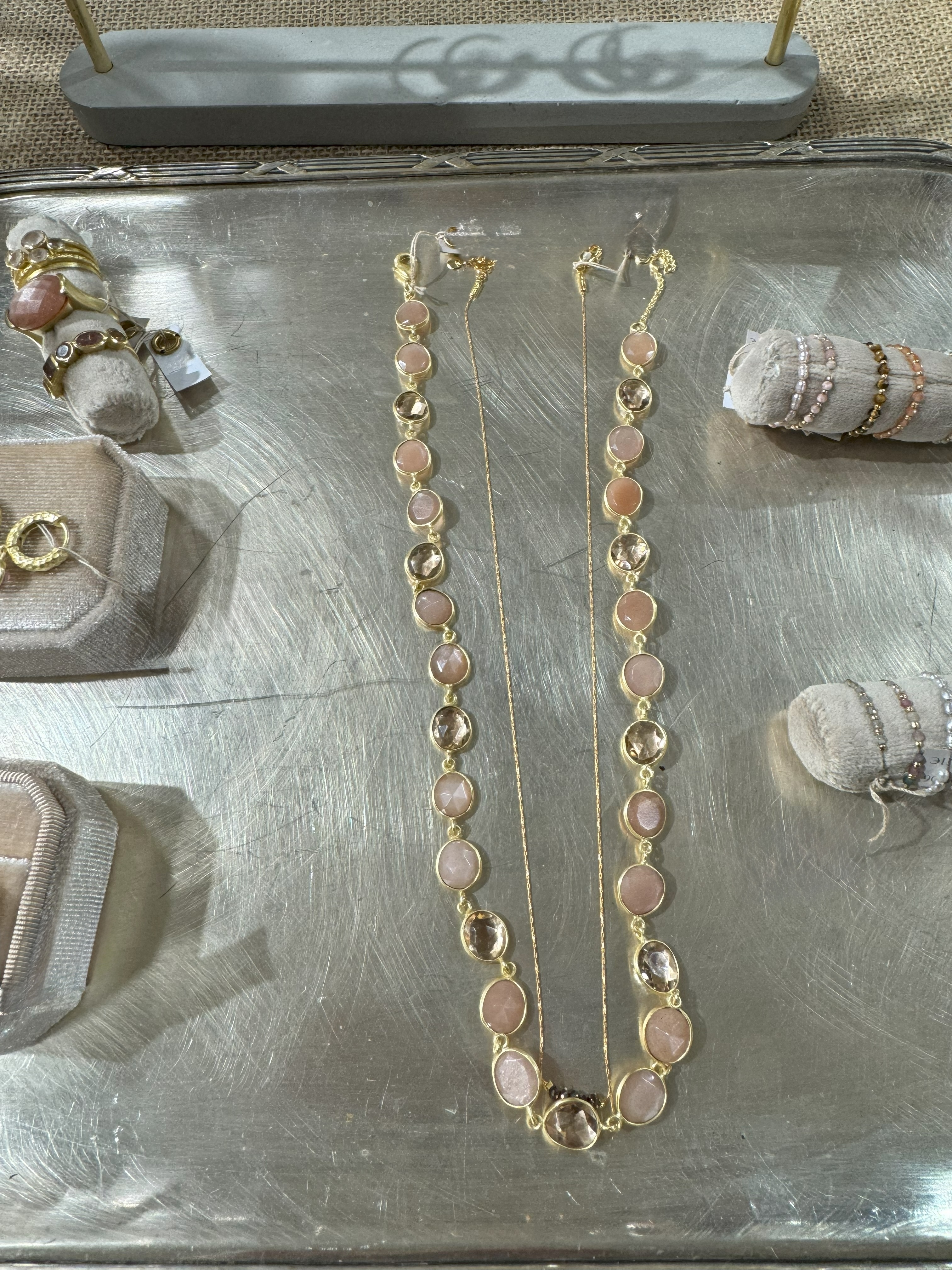 • gemstone peach moonstone and rose quartz (or) labradorite