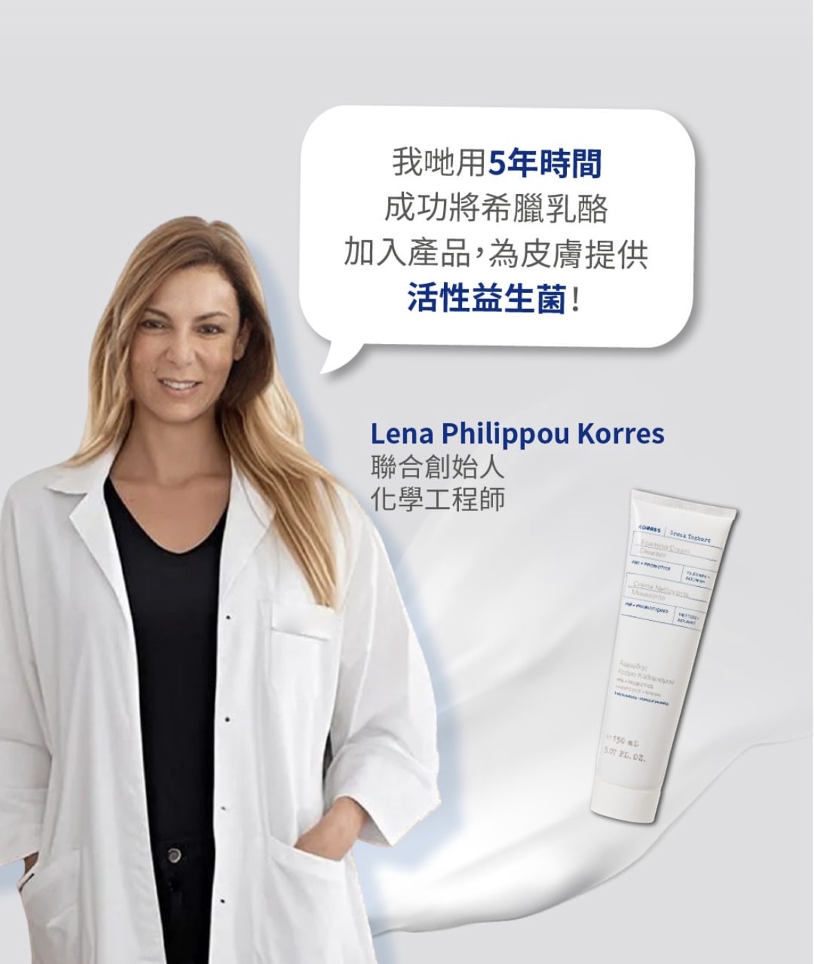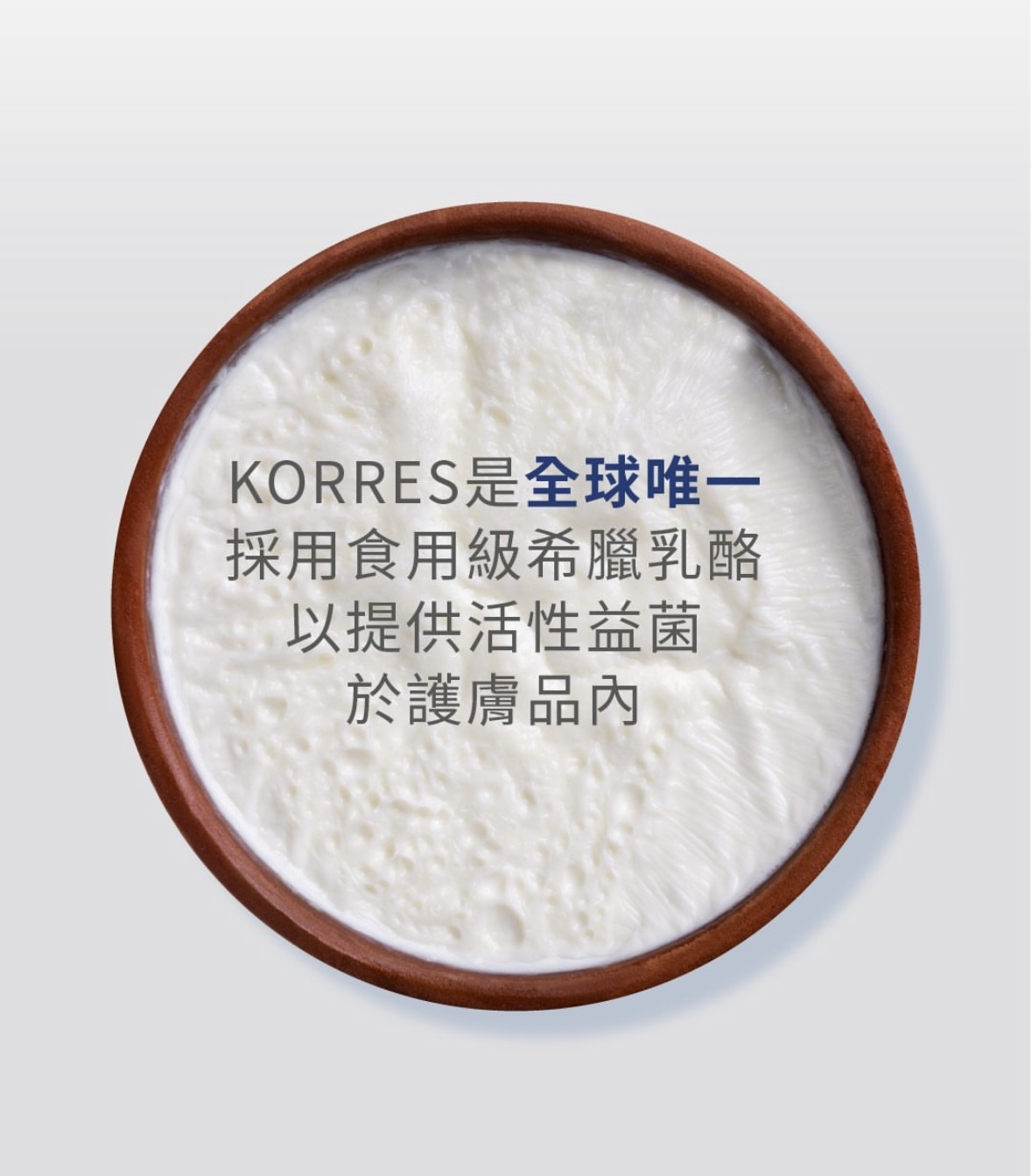 - 全球首創選用食用級希臘乳酪,作為產品的主要成份是一項科學和創新的成就,即使現在的護膚及化妝科技都難以保存乳酪的活性及營養