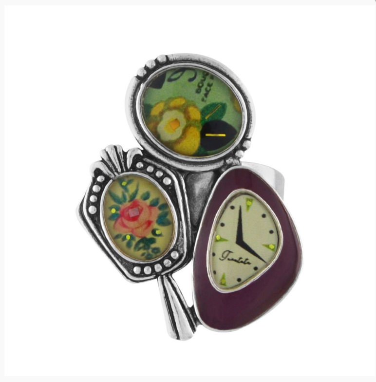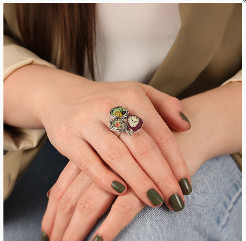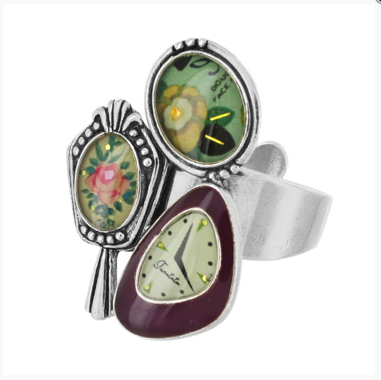 Composition : Metal, hand-painted colored resin, printed pattern inclusion in resin, glitter