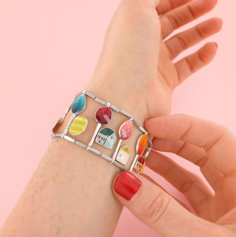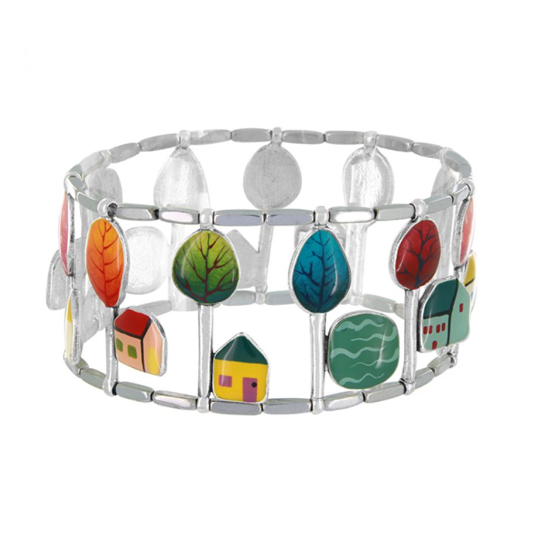 Composition : metal, colored resins whose patterns are hand-painted, tinted hematite