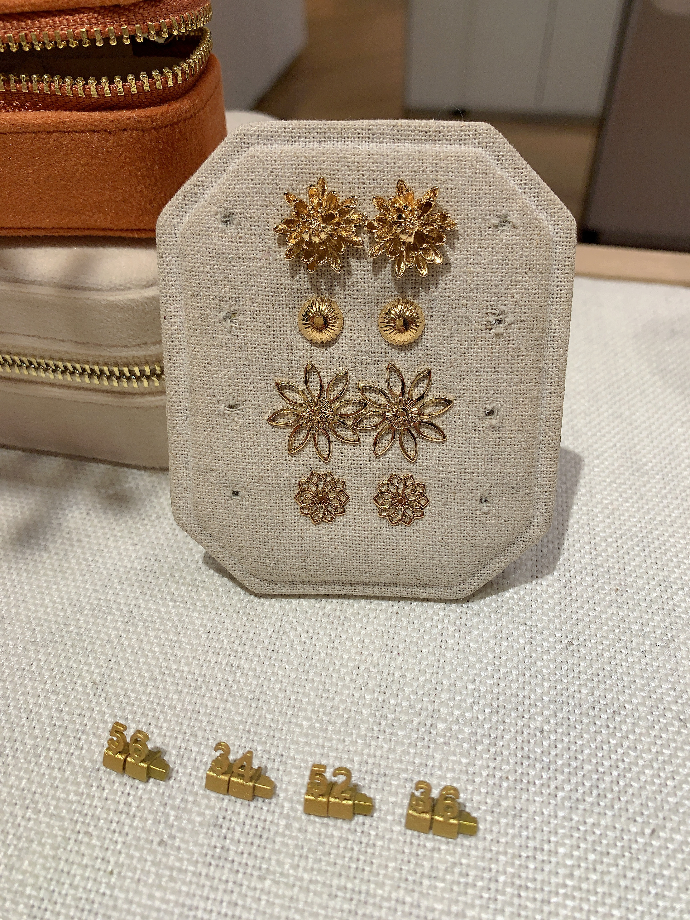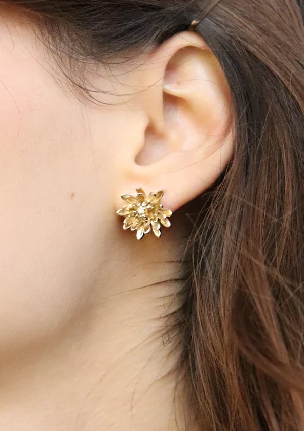 Earrings with flower pattern, 3 microns gold plated.