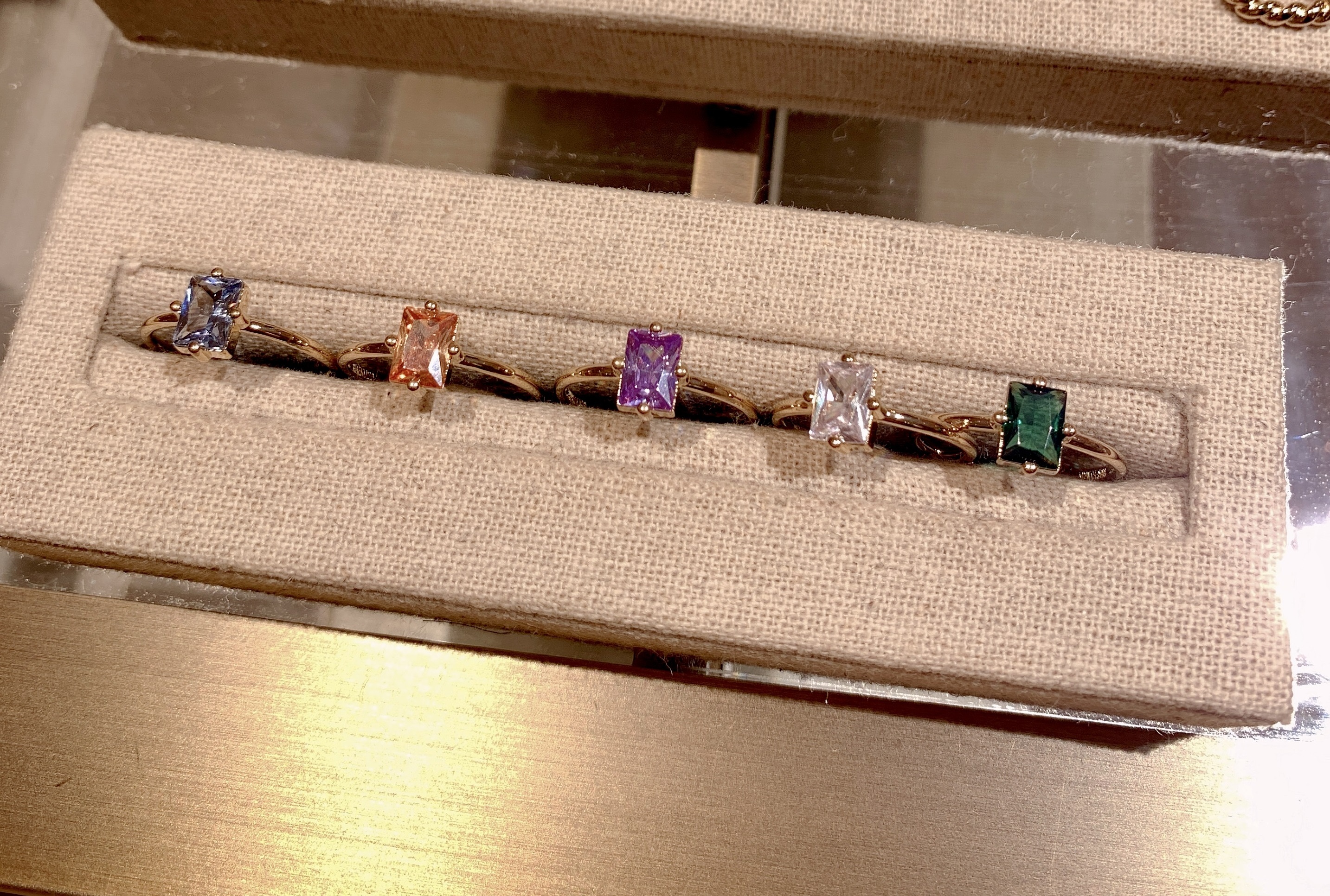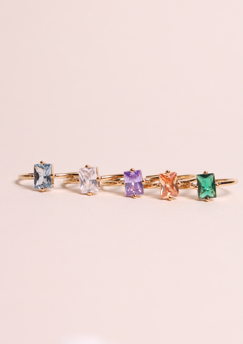Ring set with a colored zircon. It is available in 5 colors, always in 3 microns gold plated.