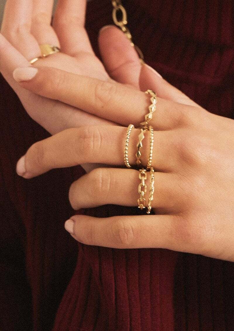 Adjustable openwork ring with fine details in 3 micron gold plated.