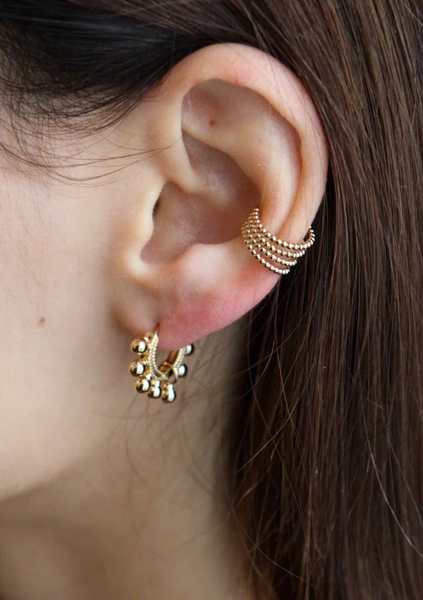 Discover our Nisrine earcuff and its 4 beaded branches. Always in 3 microns gold plated.