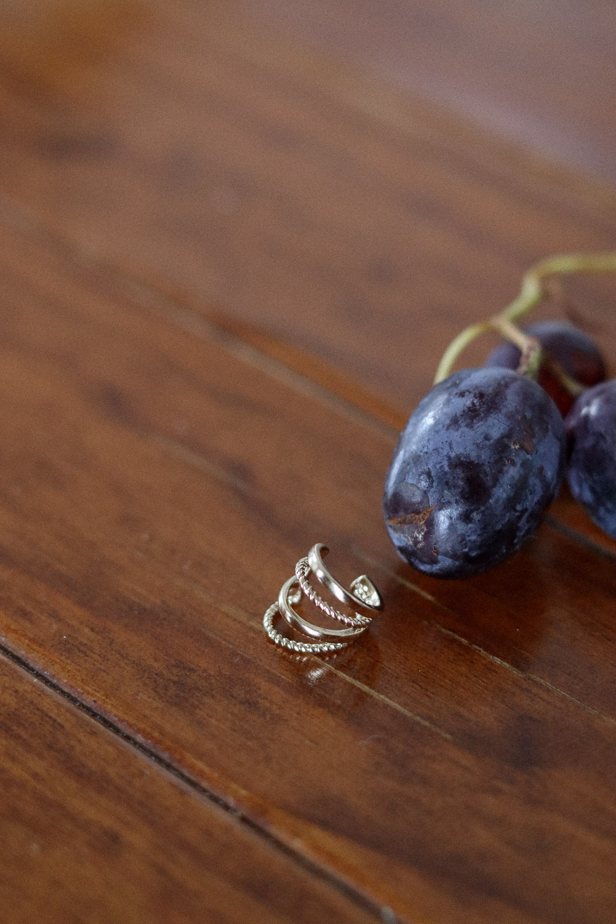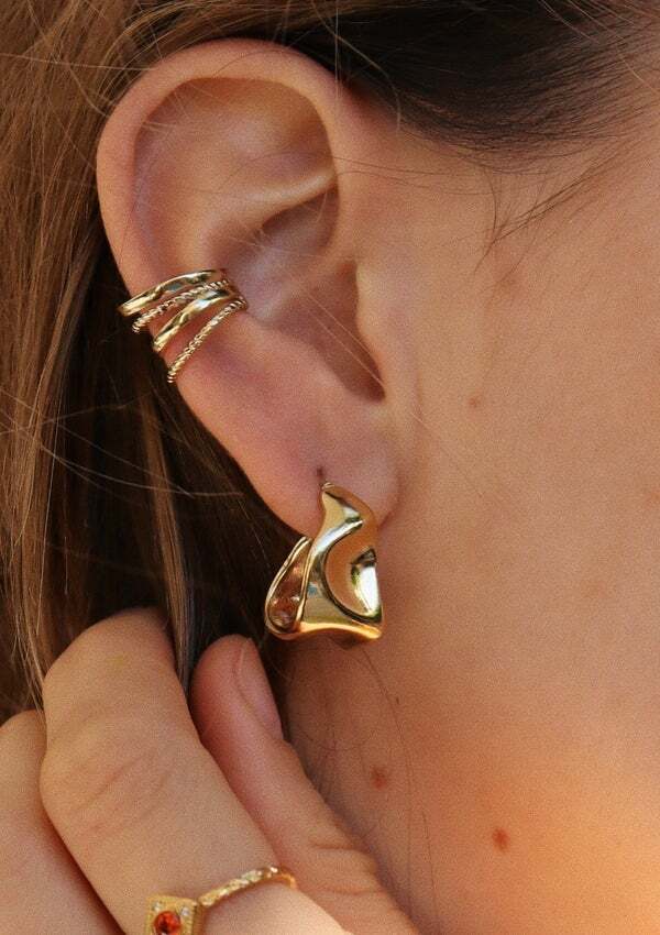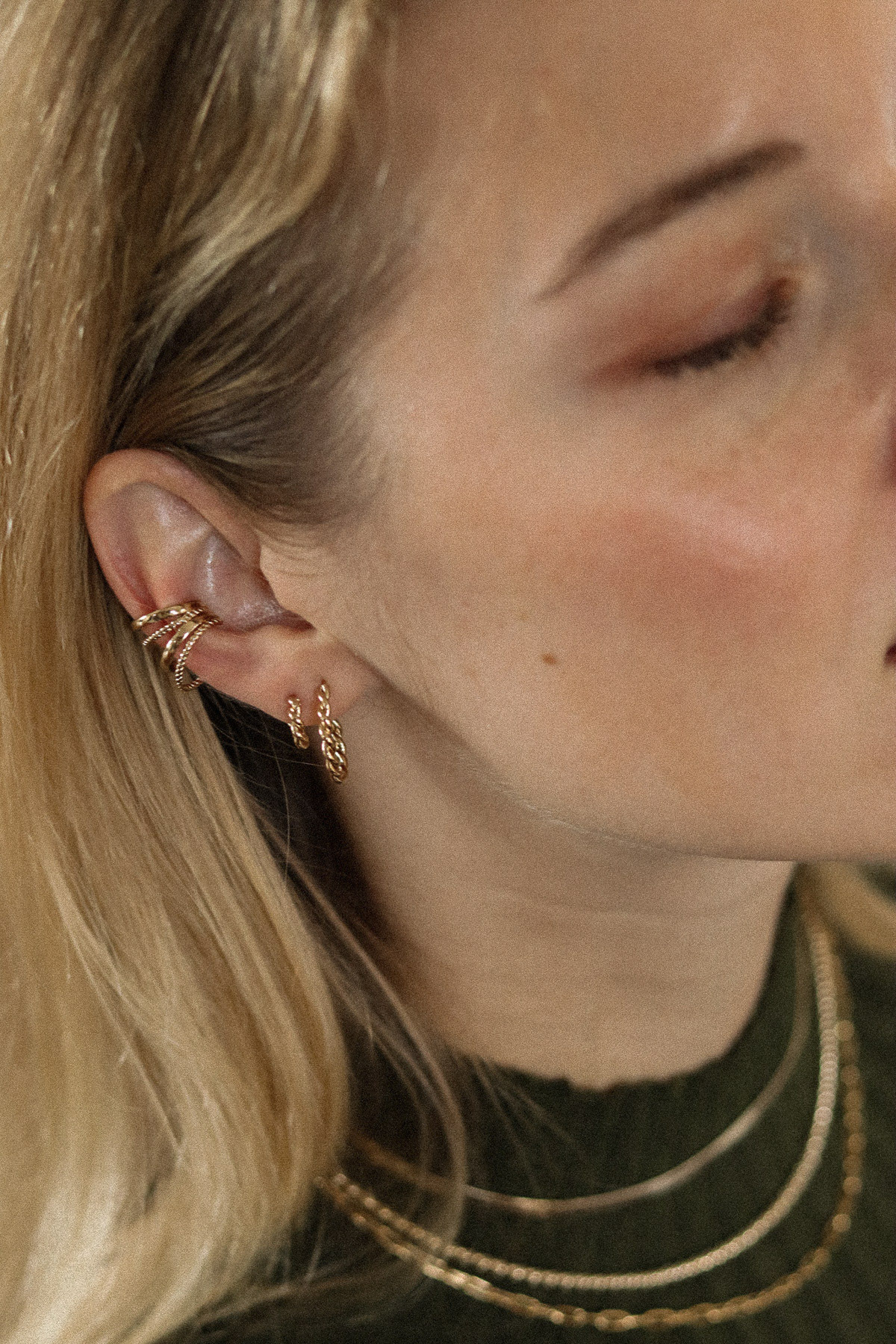 Earcuff made of 4 branches, 1 of which is braided in 3 micron gold plated.