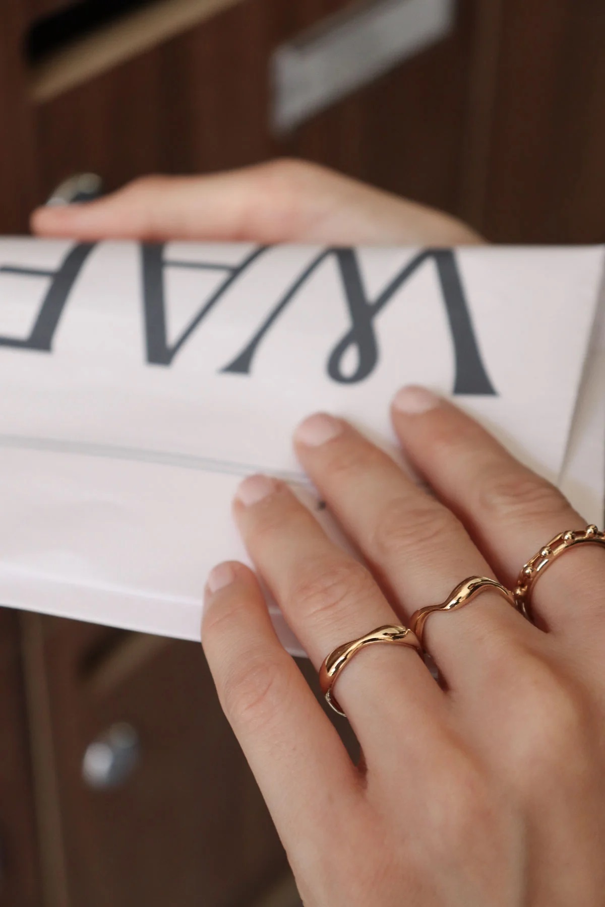 An organic curve for this light and comfortable ring with 3 micron gold-plated.