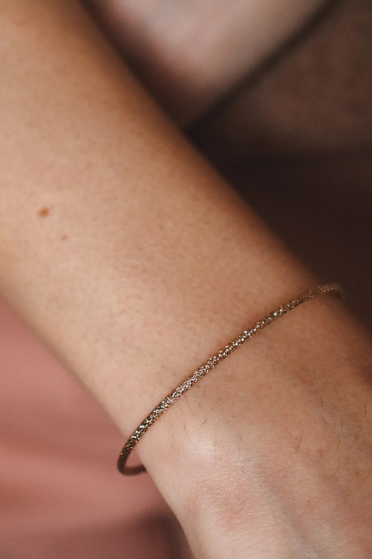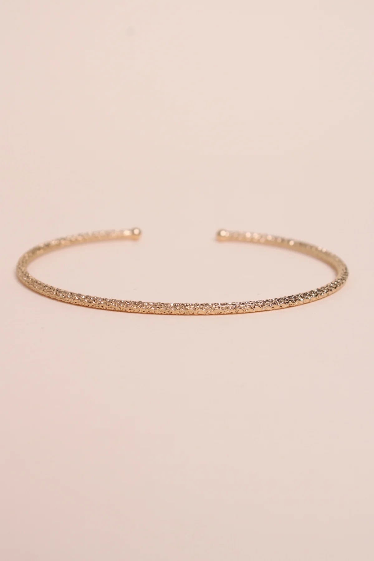 Embody the light with this delicately hammered bangle, a piece that will spread its glow on your wrist, in 3 micron gold plated.