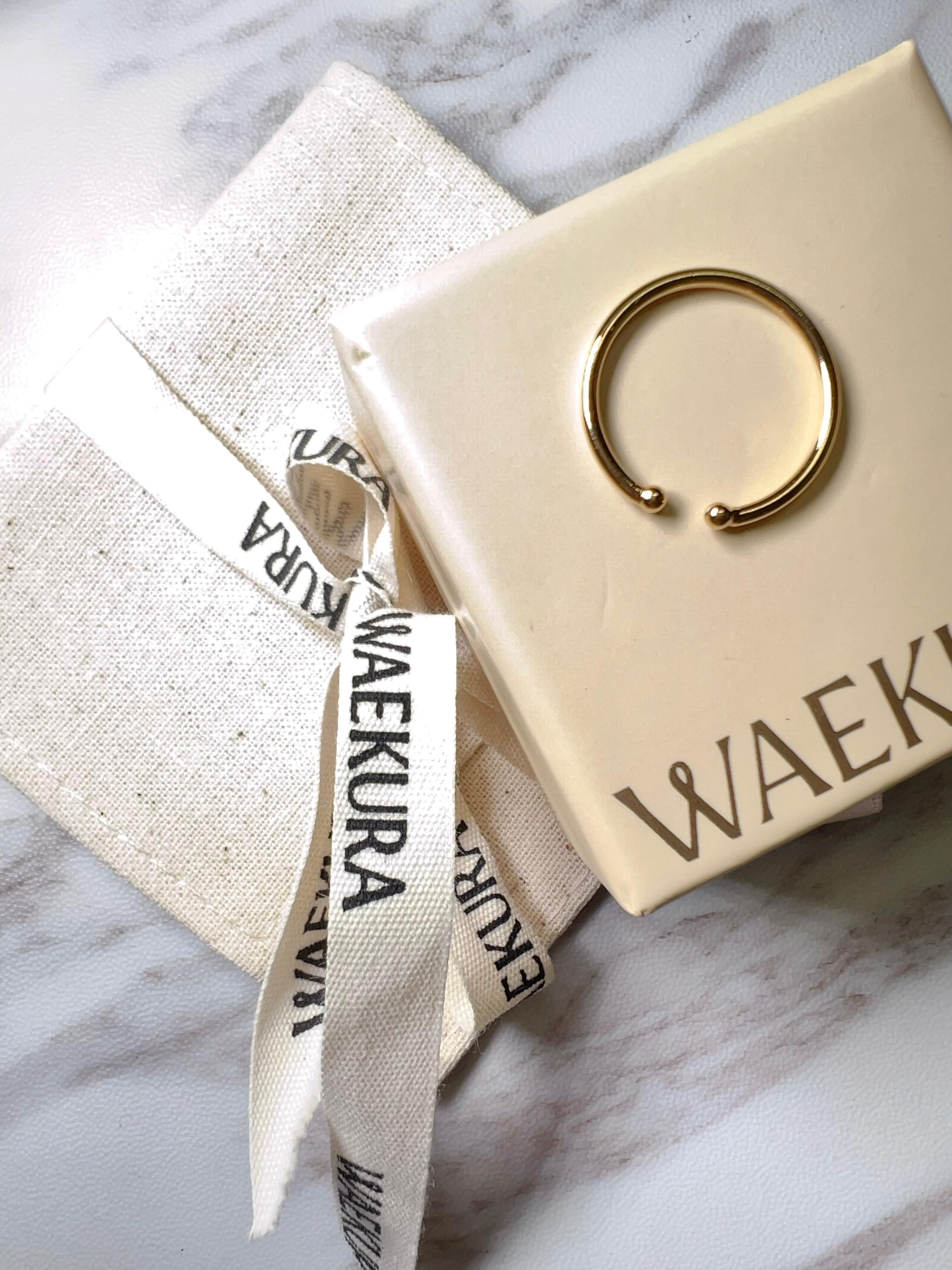 Adjustable 3 micron gold plated ring with 2 beads at the ends.
