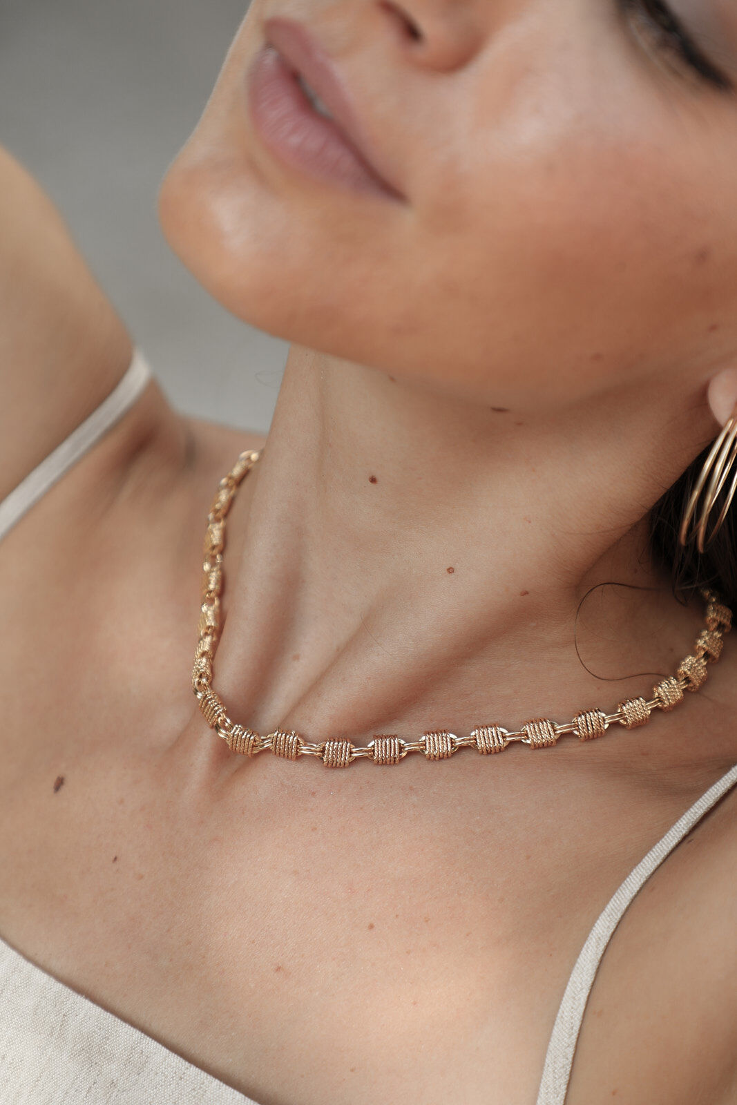 \Our new flagship necklace, the Kiran. An original link with a geometric shape. A design that won't go unnoticed!