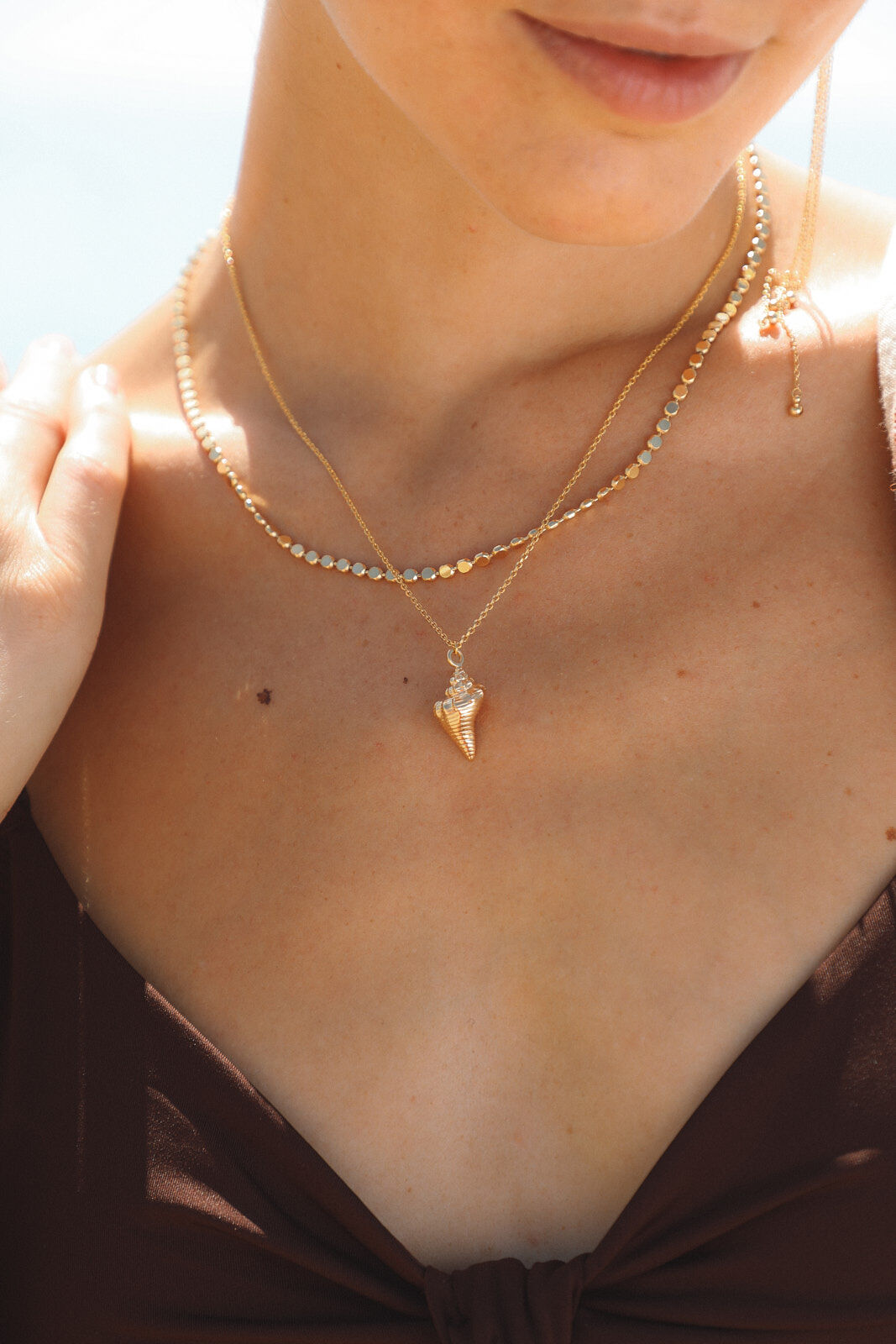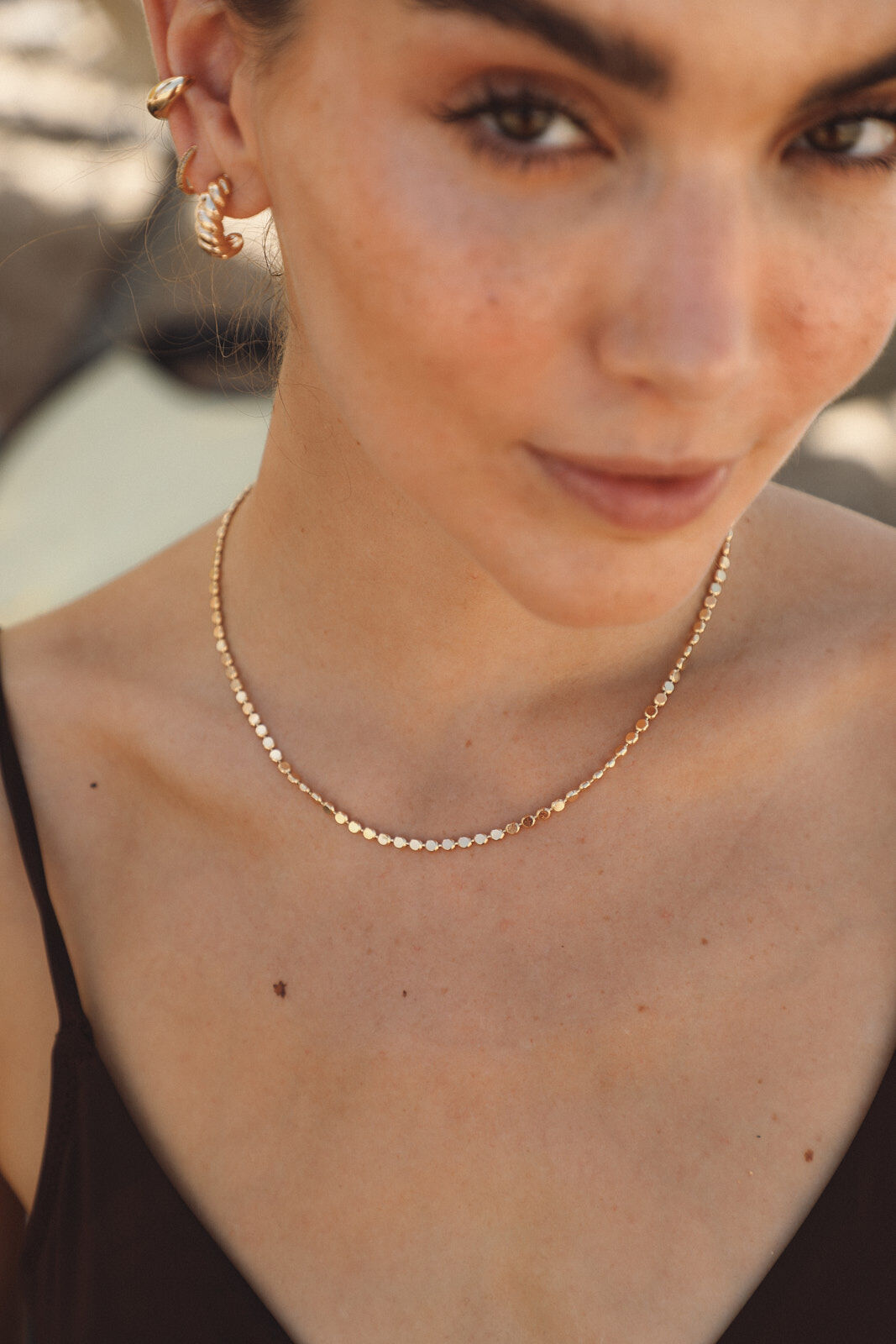 If you loved the Perla necklace, we're offering this version with a wider link for a more distinctive look.