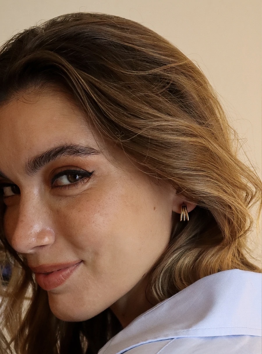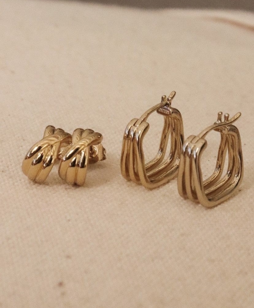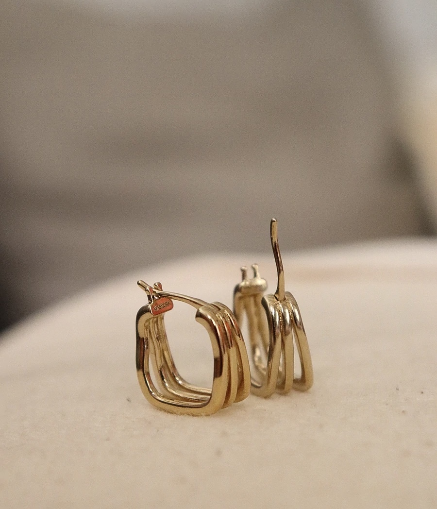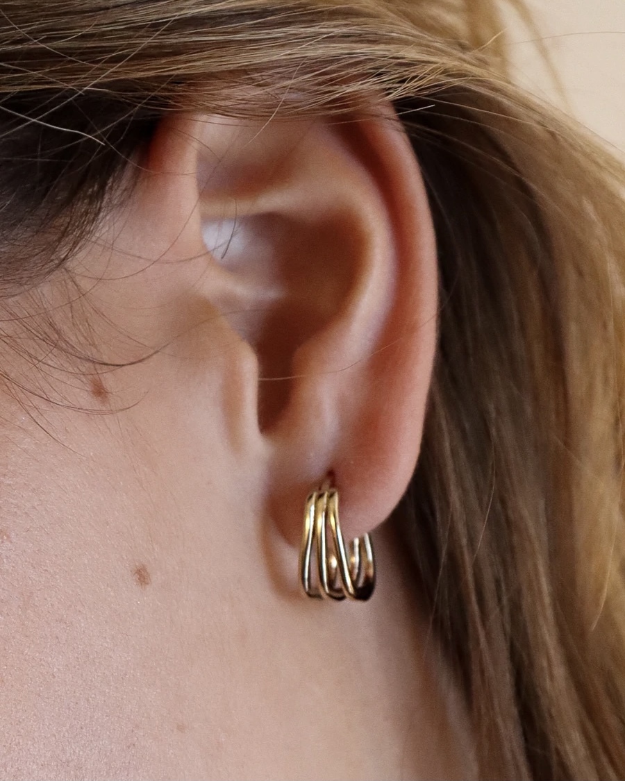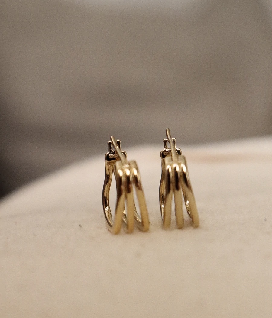 Semi-open earrings with triple smooth rings, 3 micron gold plated